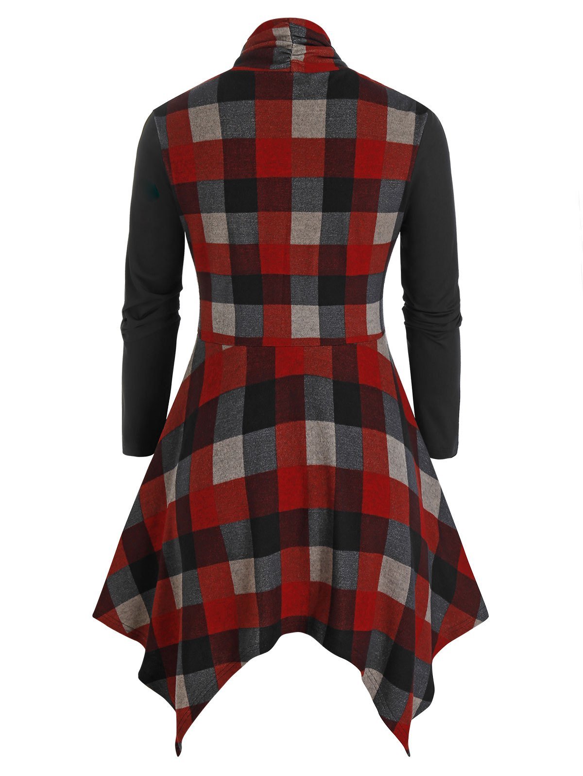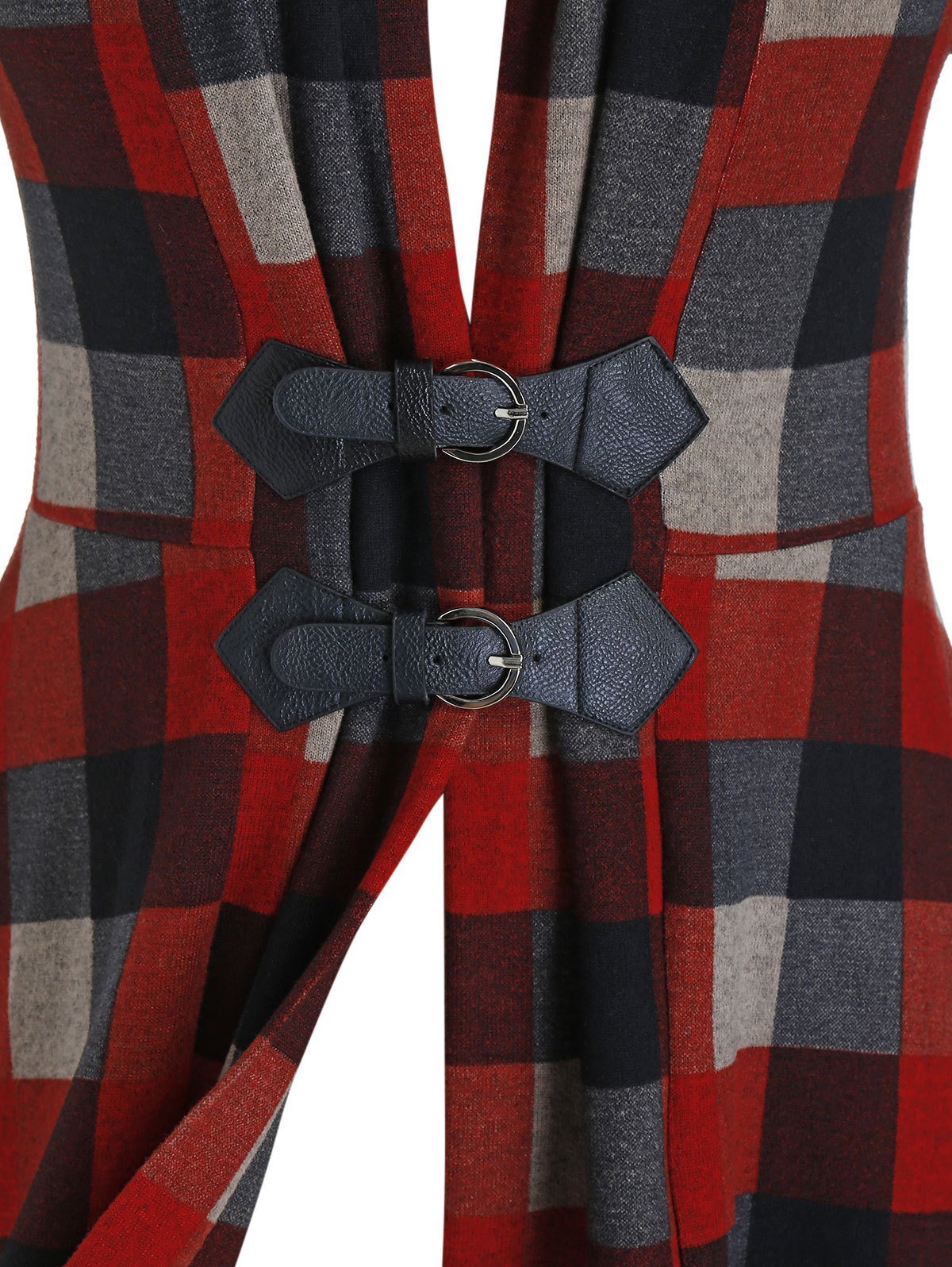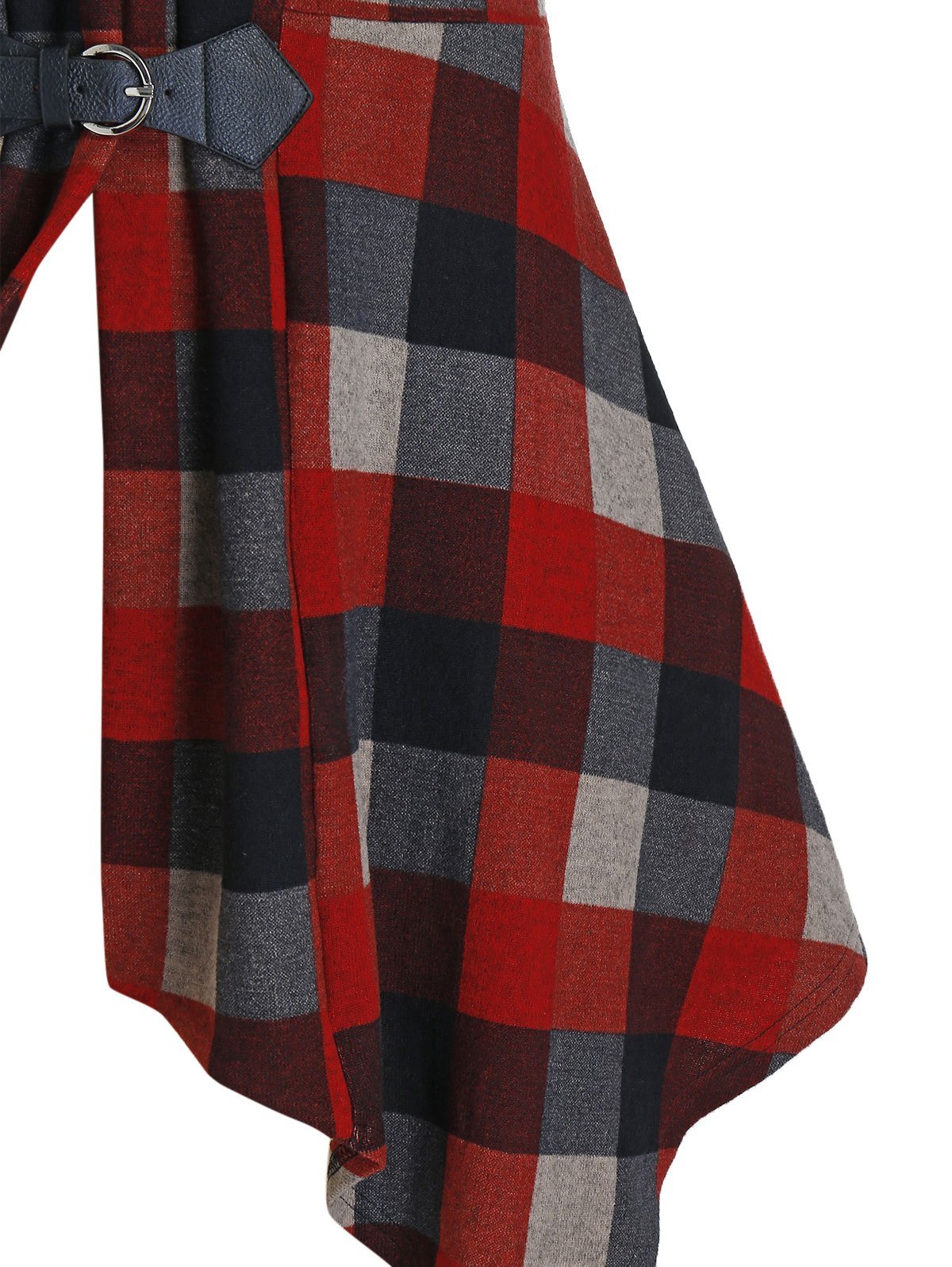 Plus Size Plaid Draped Hanky Hem Buckle Cardigan