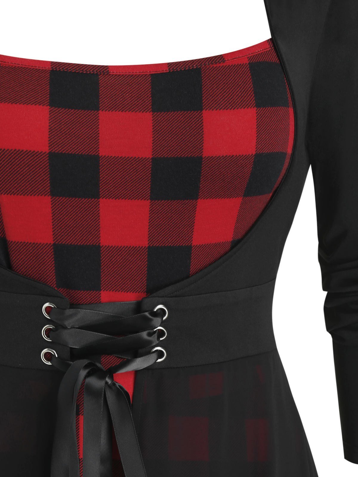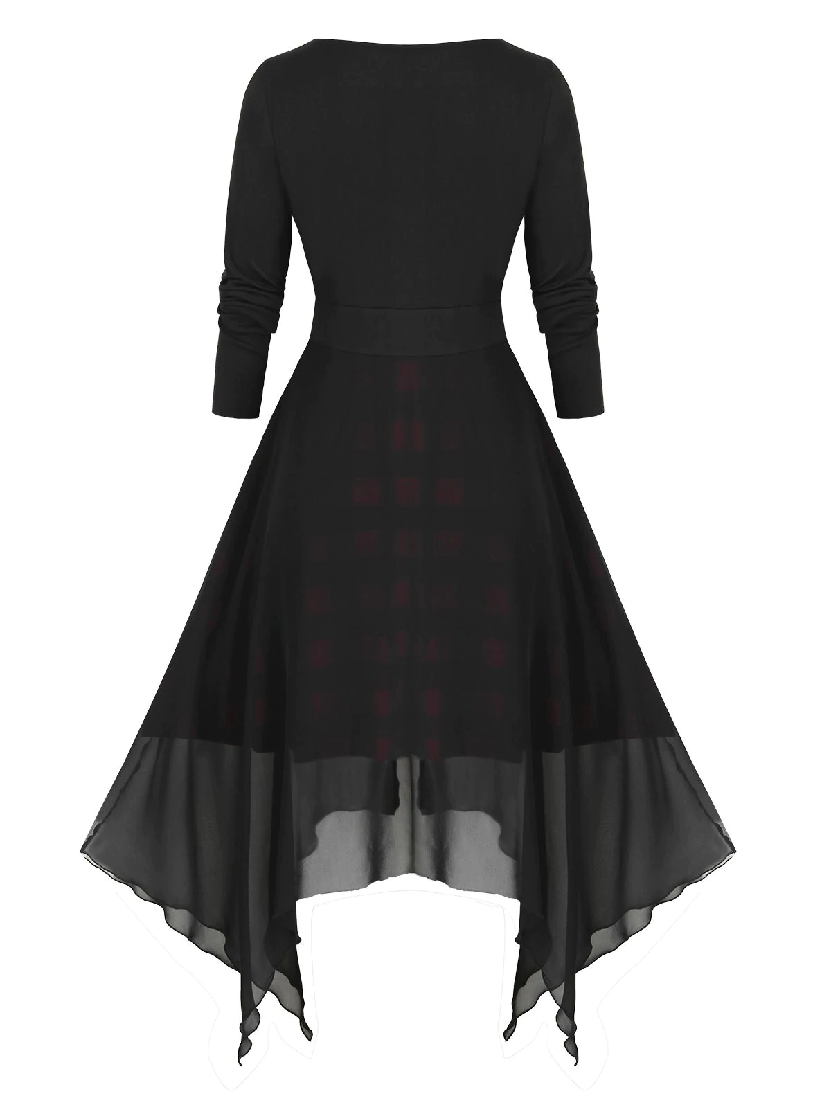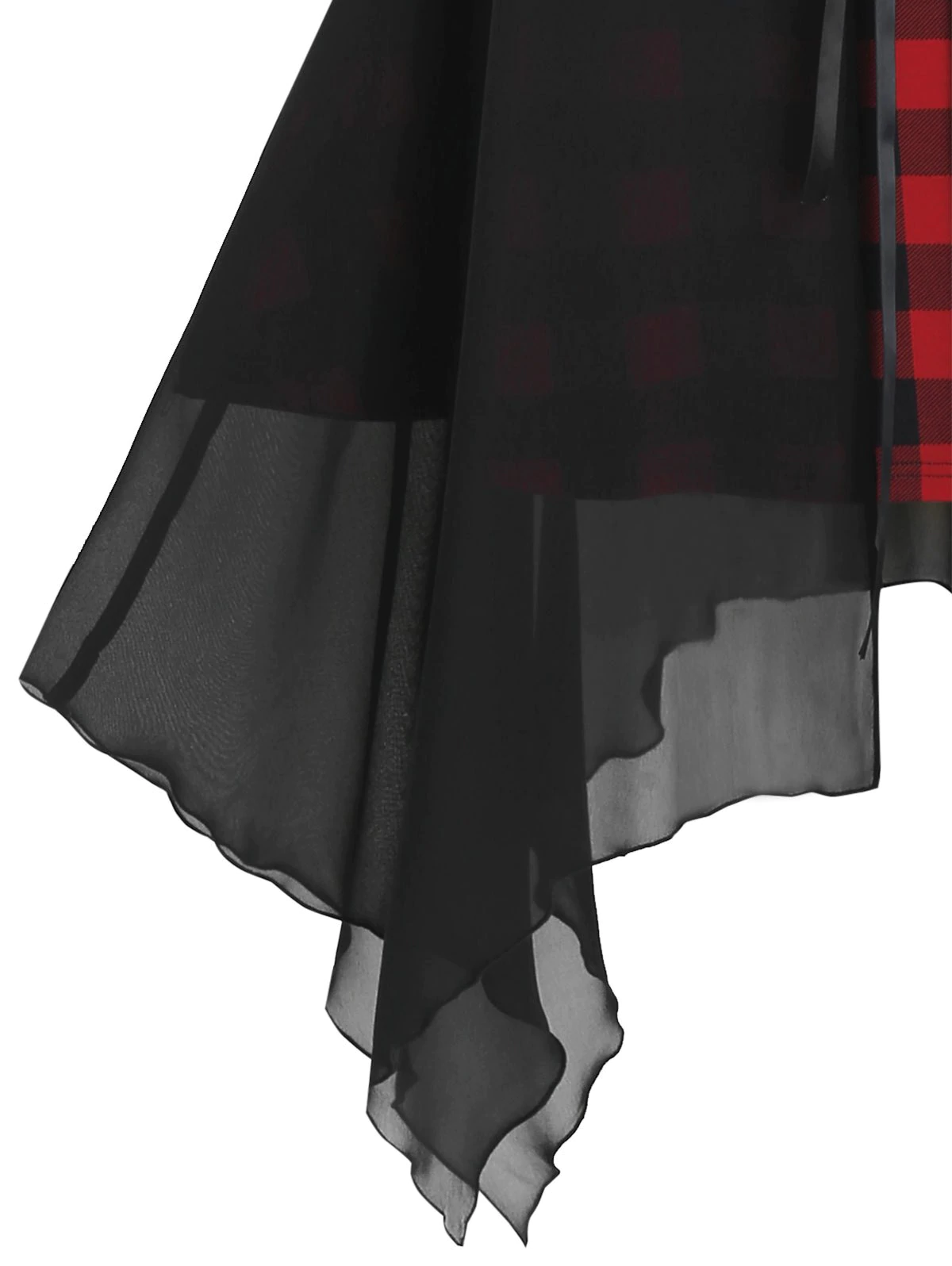 Plus Size Plaid Handkerchief Chiffon Lace-up Twofer Dress