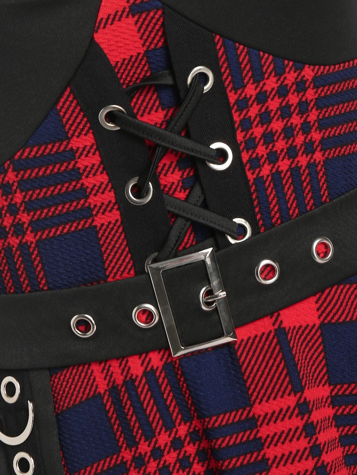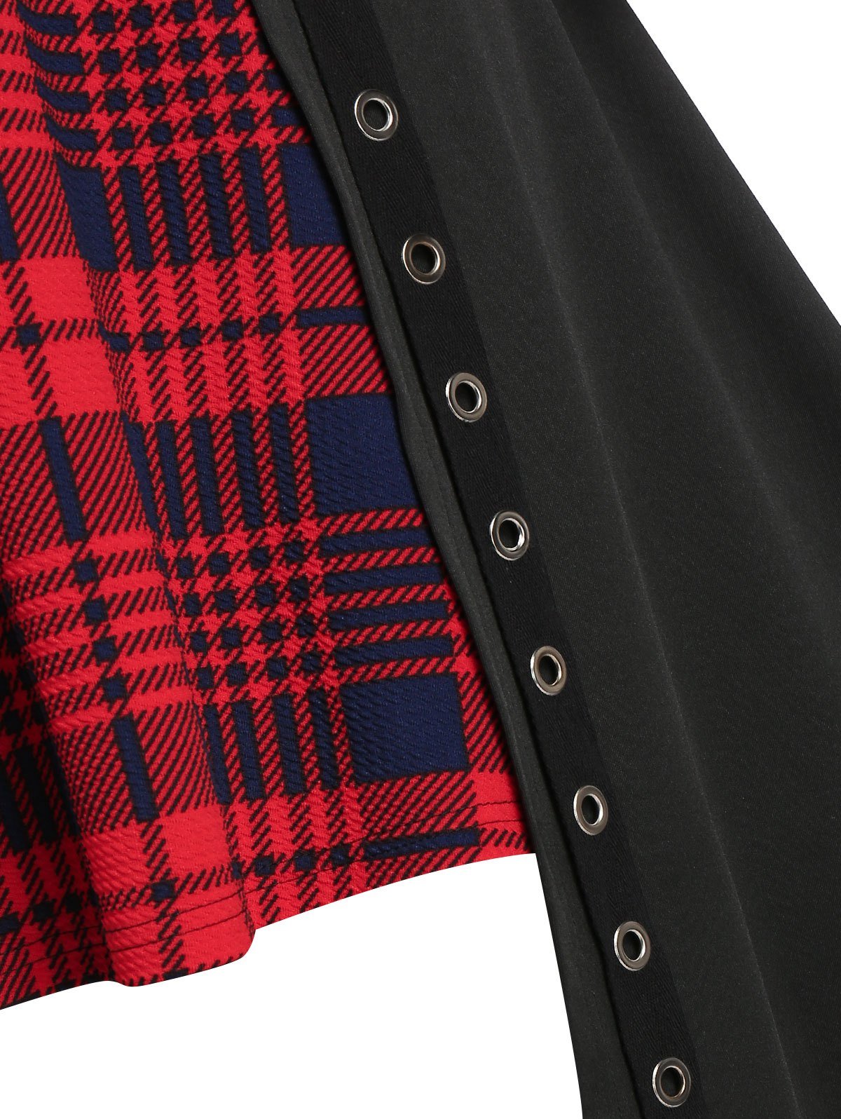 Plus Size Plaid Hanky Hem Grommet Lattice Midi Dress