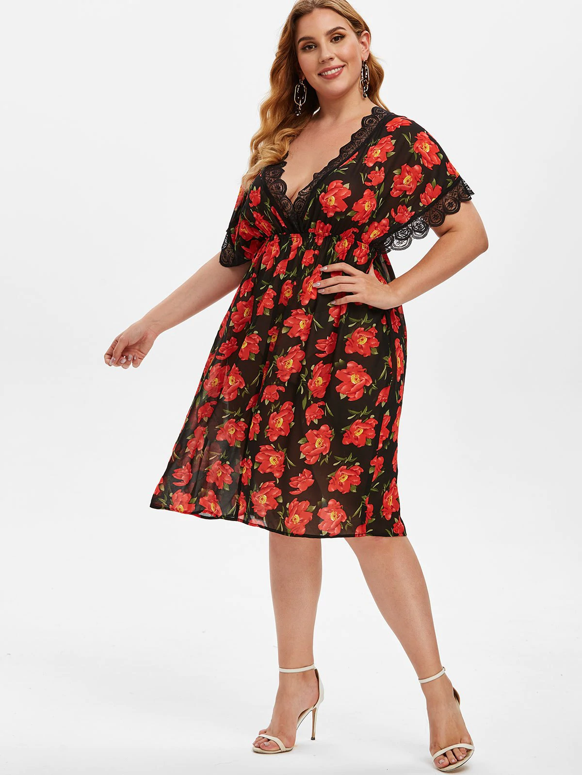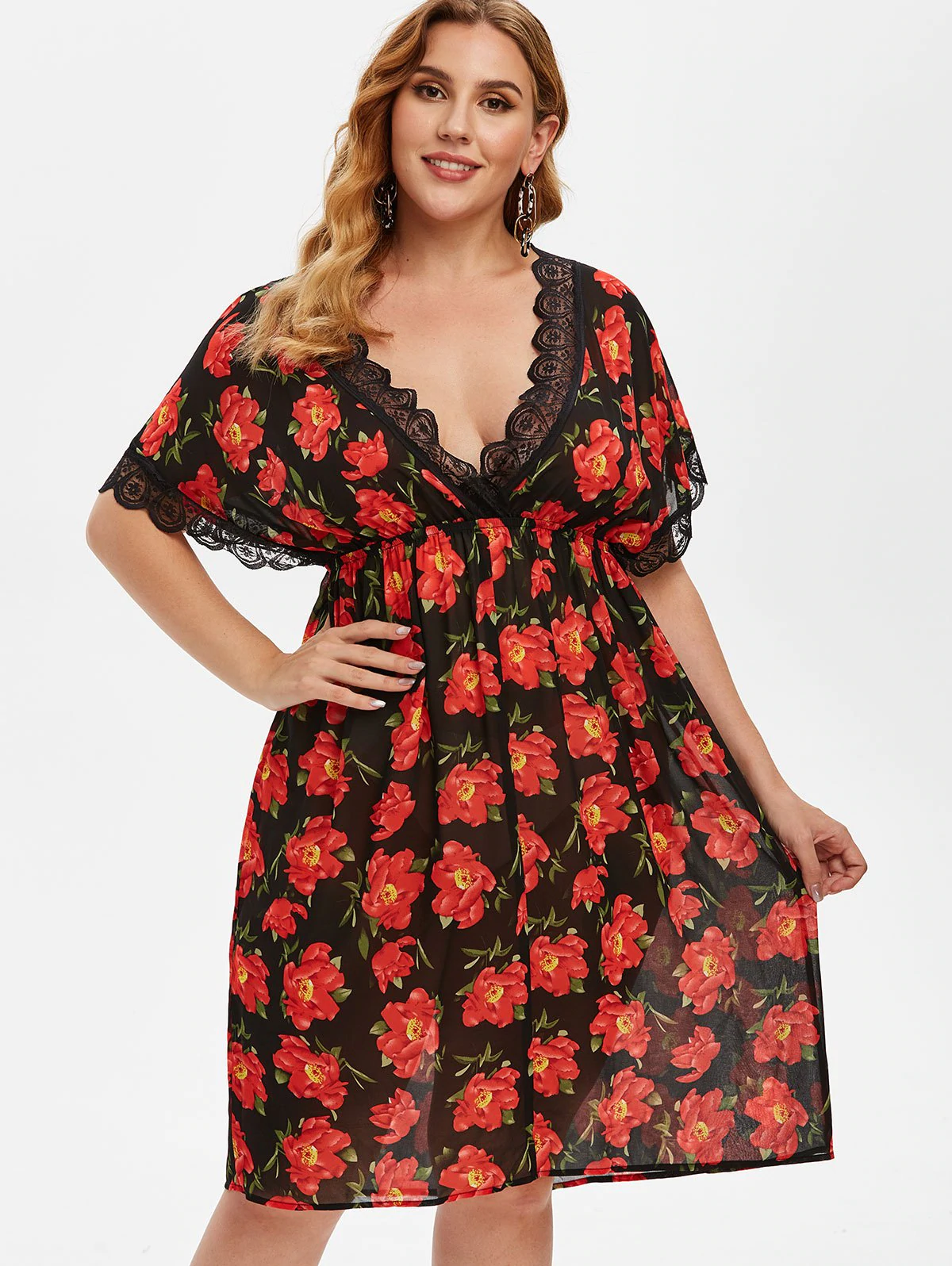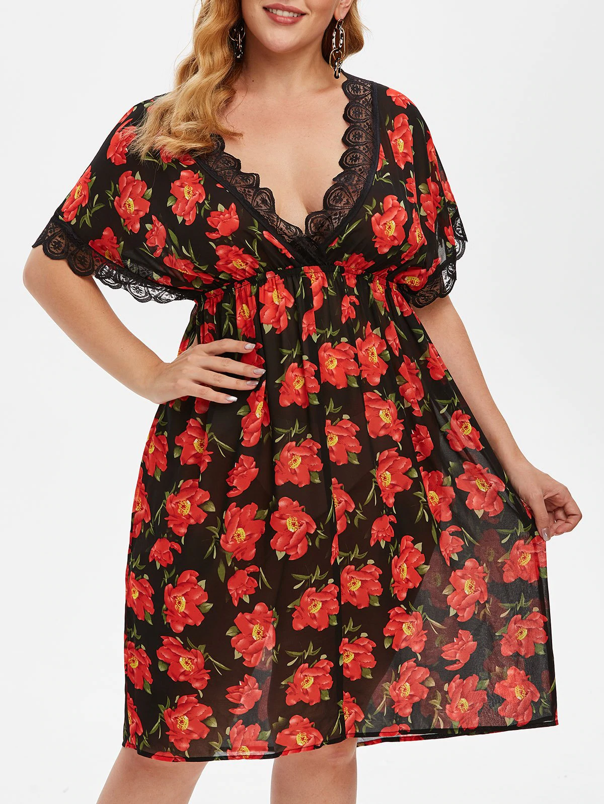 Plus Size Plunge Floral Print Chiffon Intimate Dress