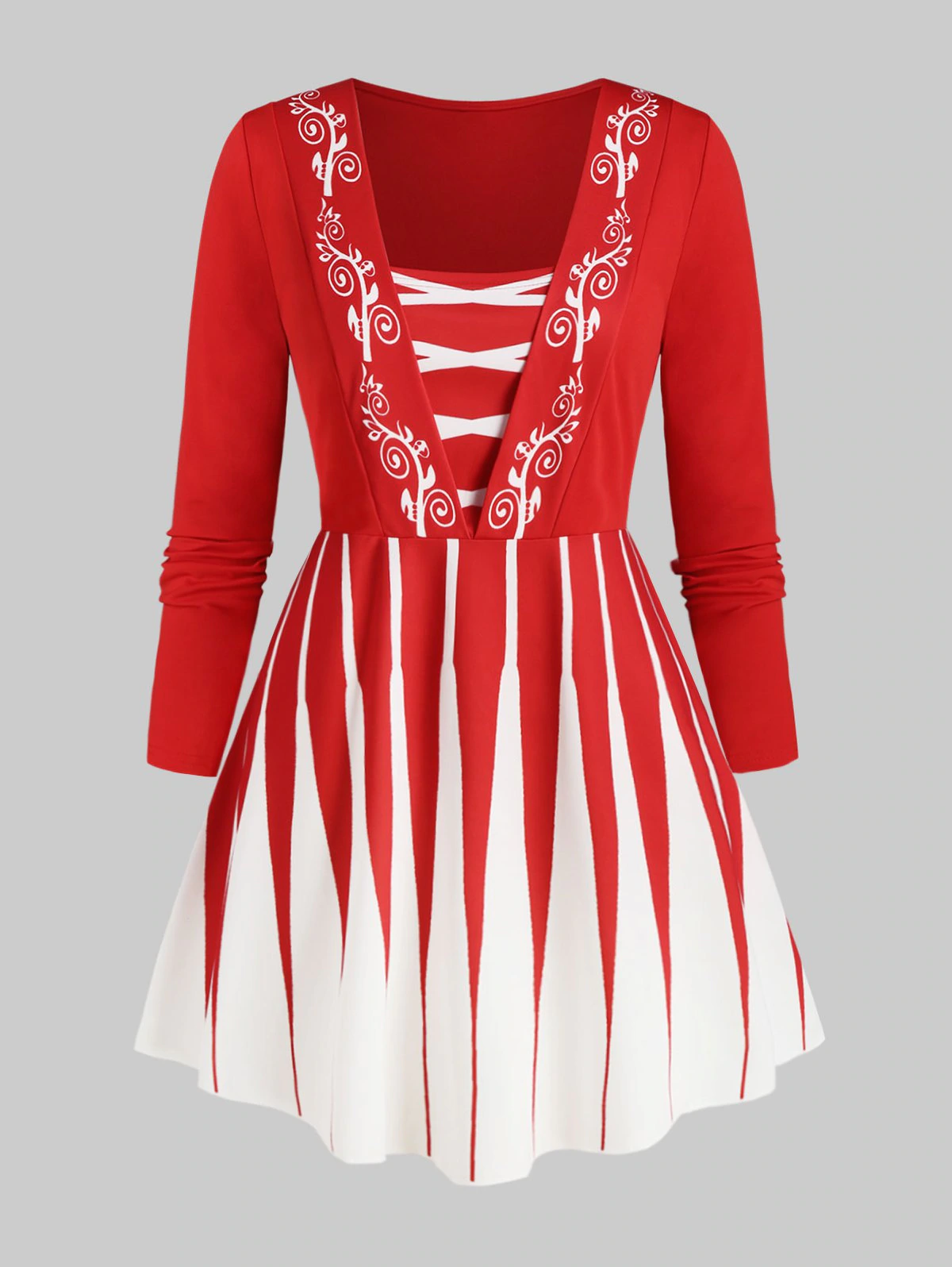 Plus Size Vintage Criss Cross Santa Claus Print Christmas Dress