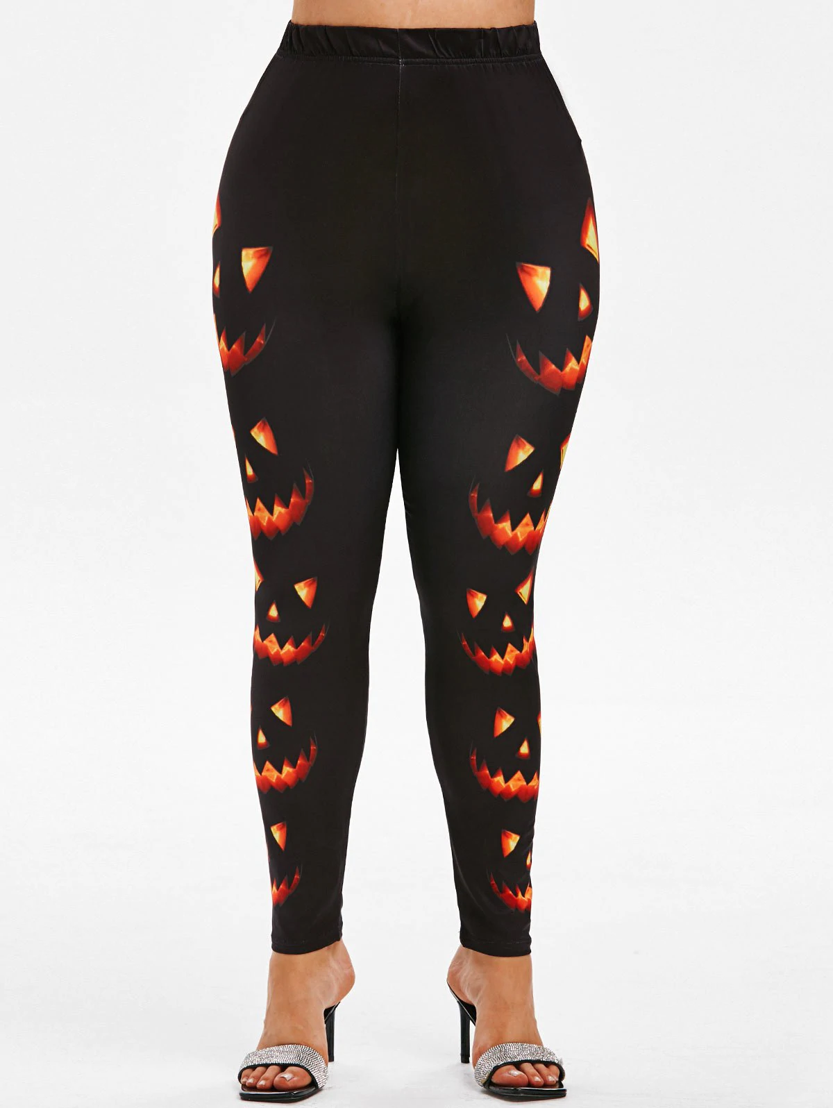 Plus Size Pumpkin Flame Halloween High Rise Leggings