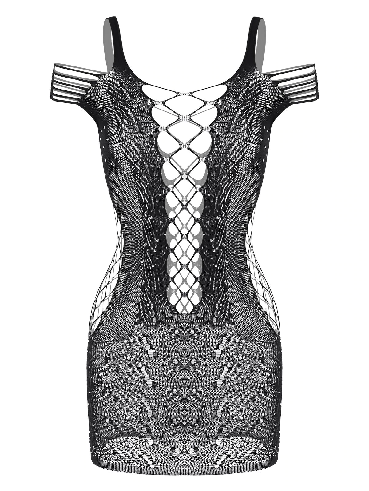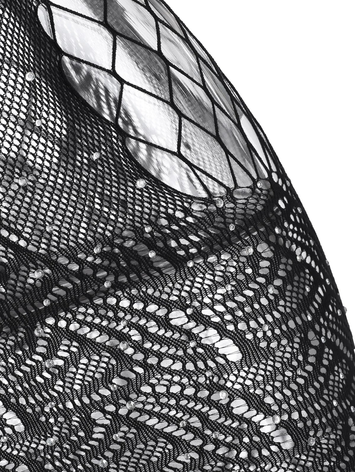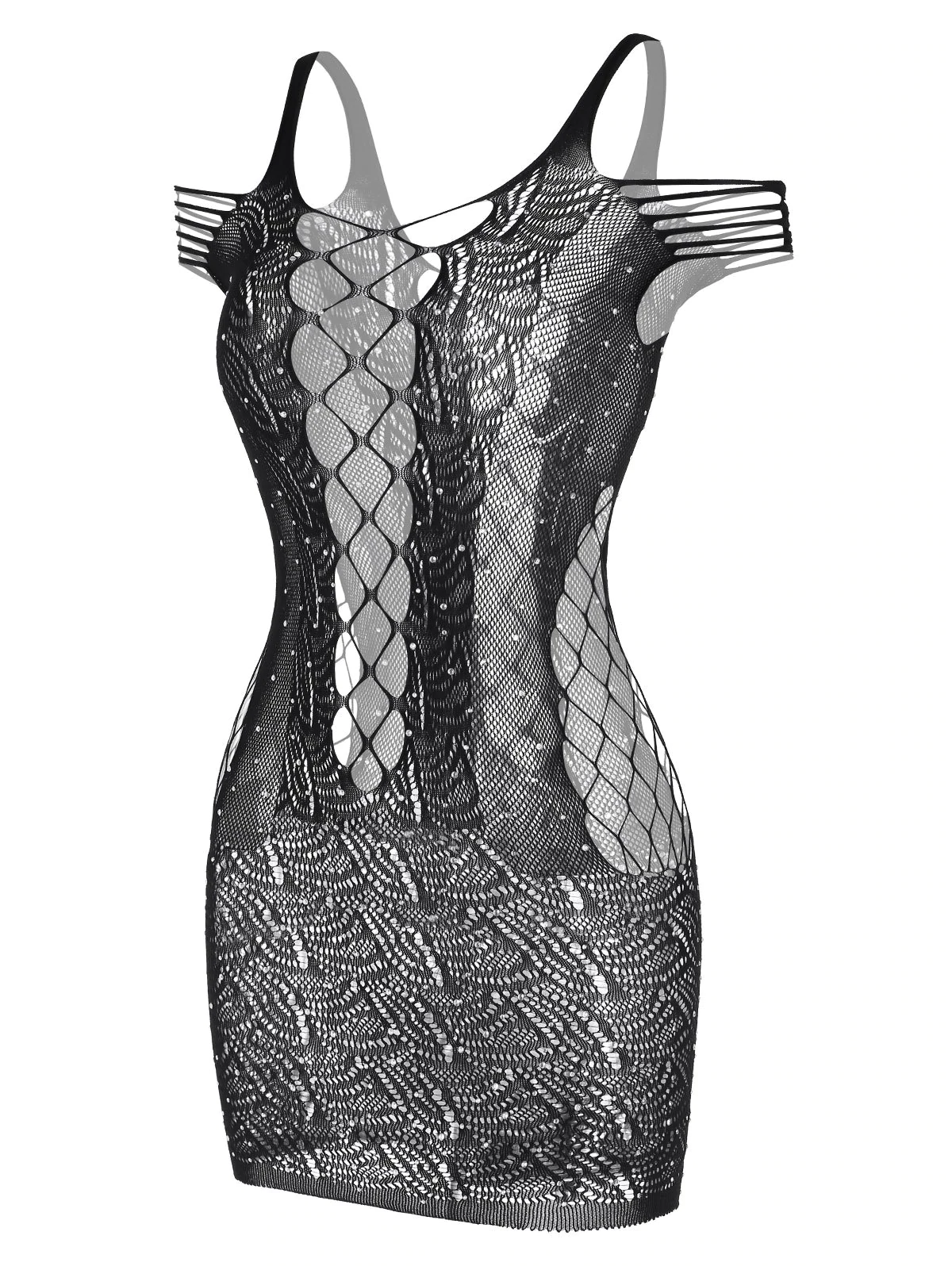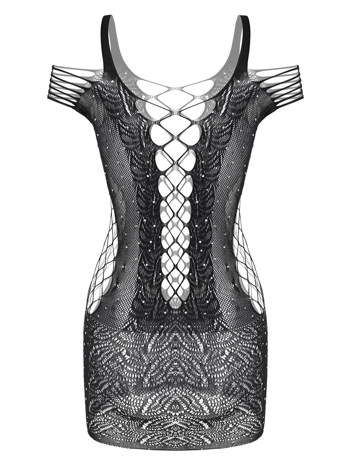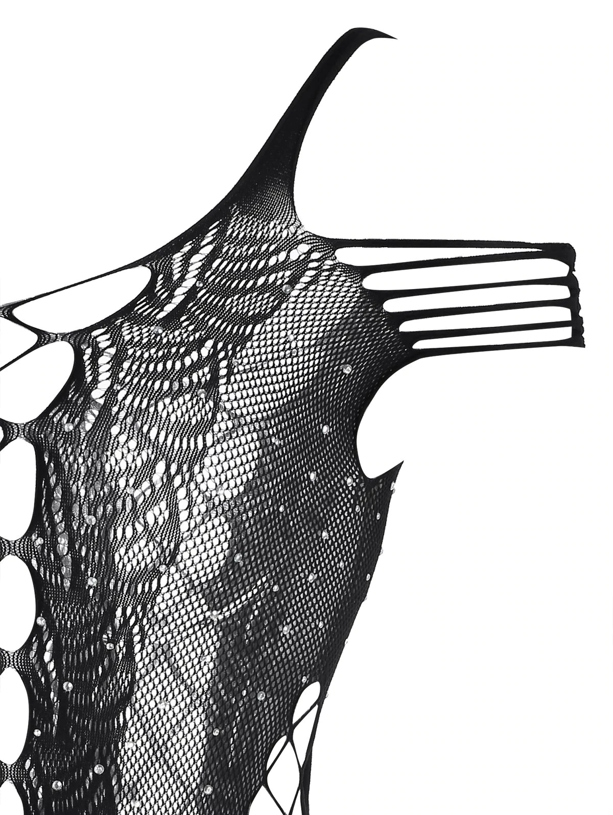 Plus Size Rhinestone Fishnet Lingerie Dress