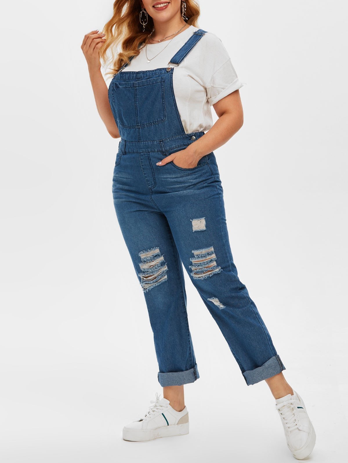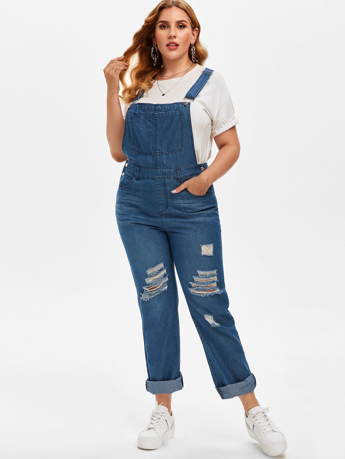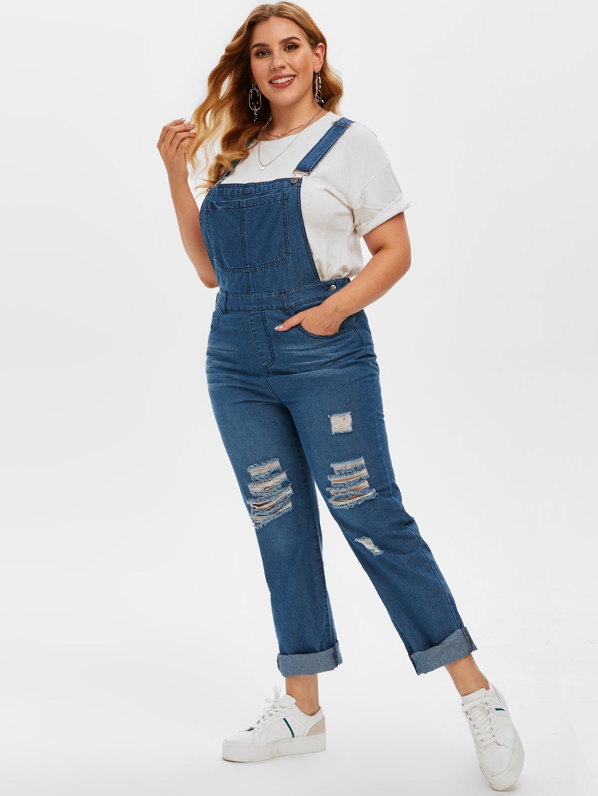 3 reviews for Plus Size Ripped Dungaree Jumpsuit