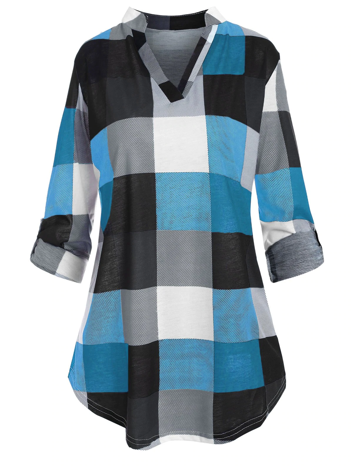 Plus Size Skew Neck Ruffled High Low Plaid Dress