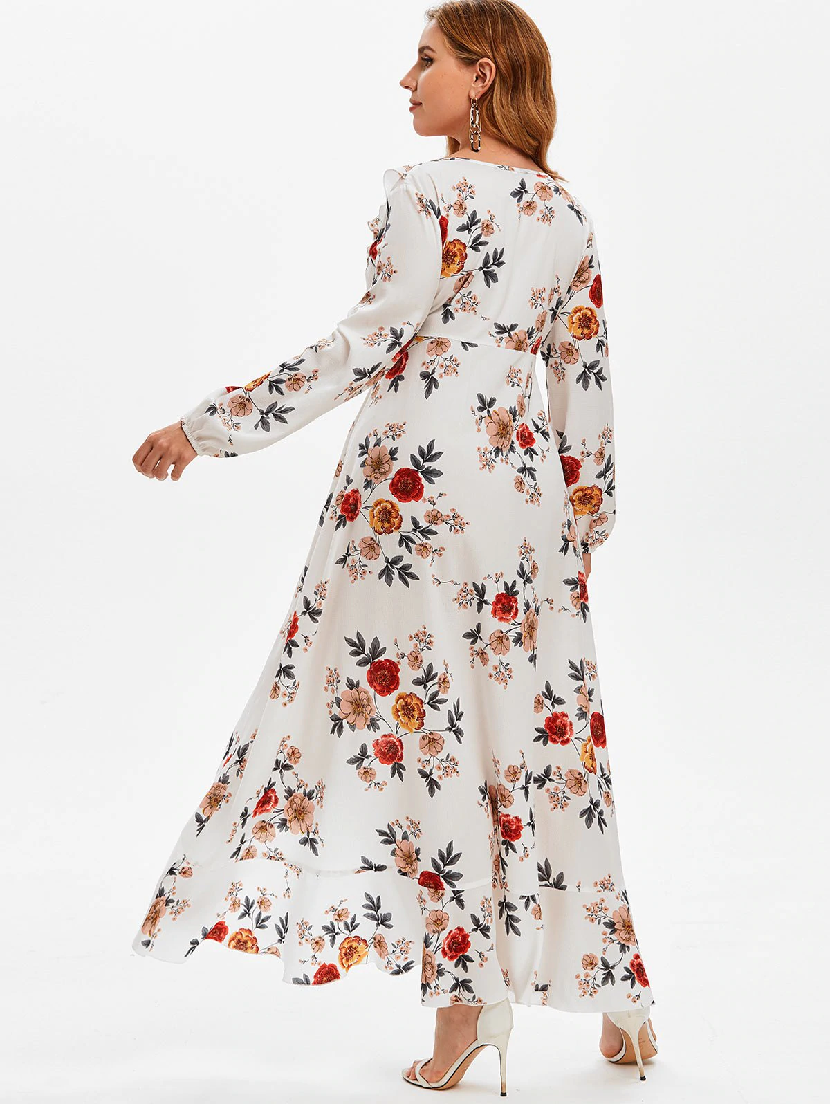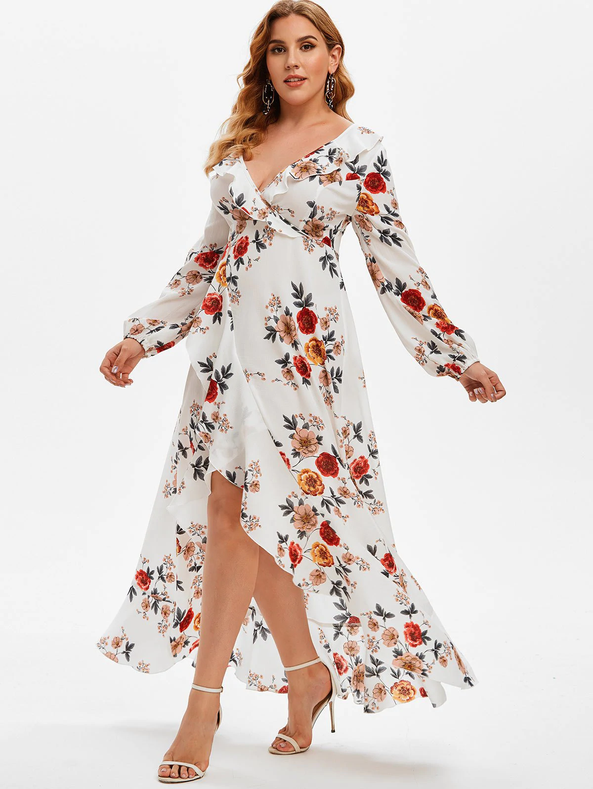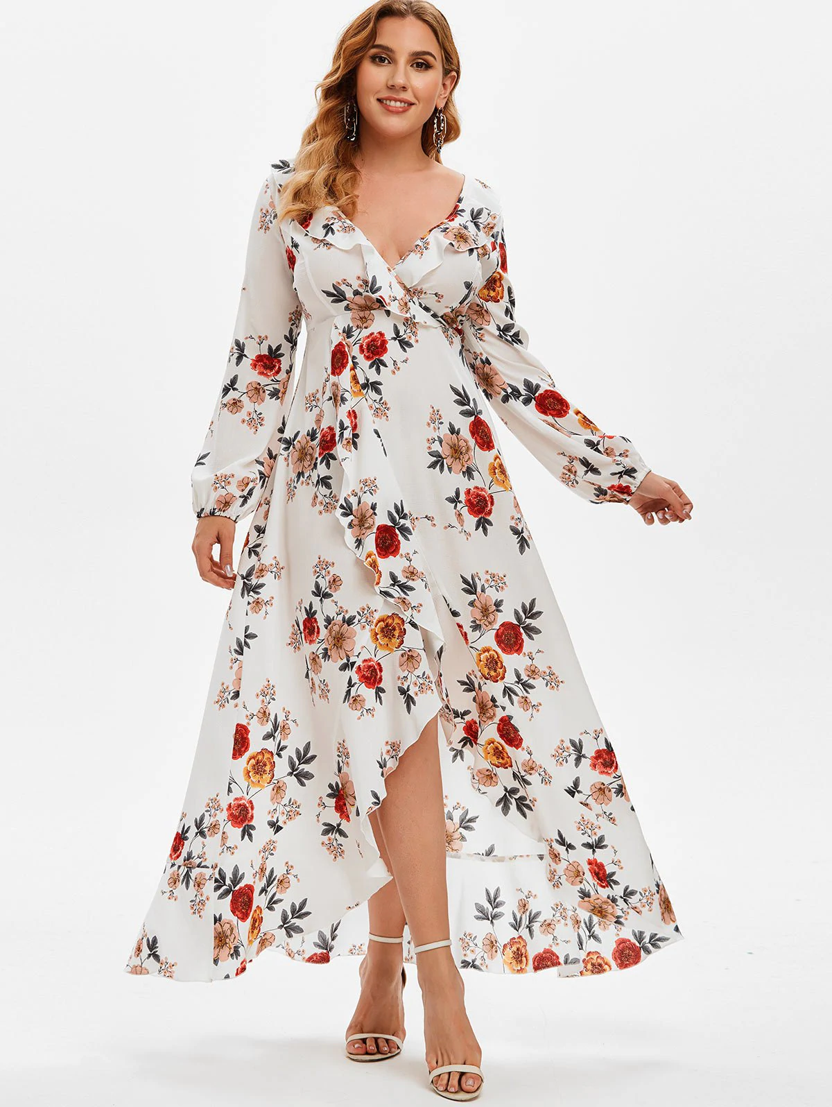 Plus Size Ruffled High Low Floral Print Dress