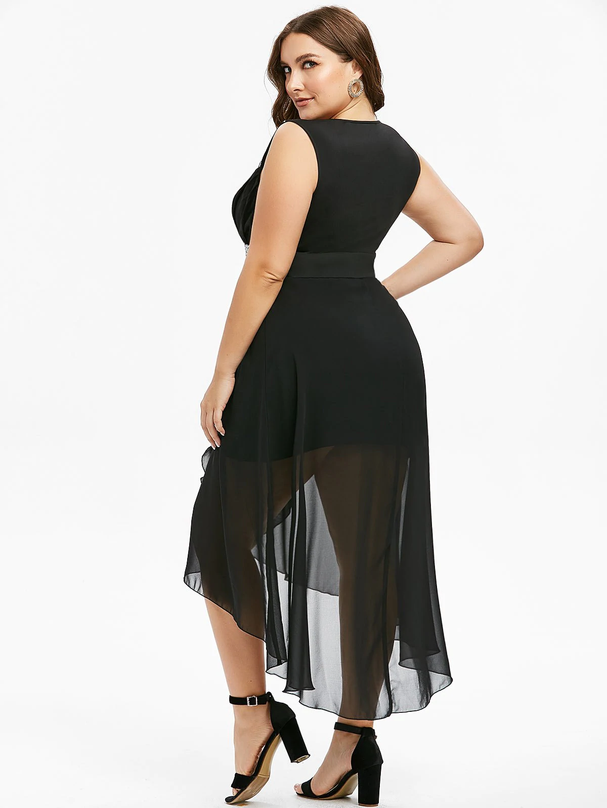 Plus Size Sequins Splicing High Low Party Dress