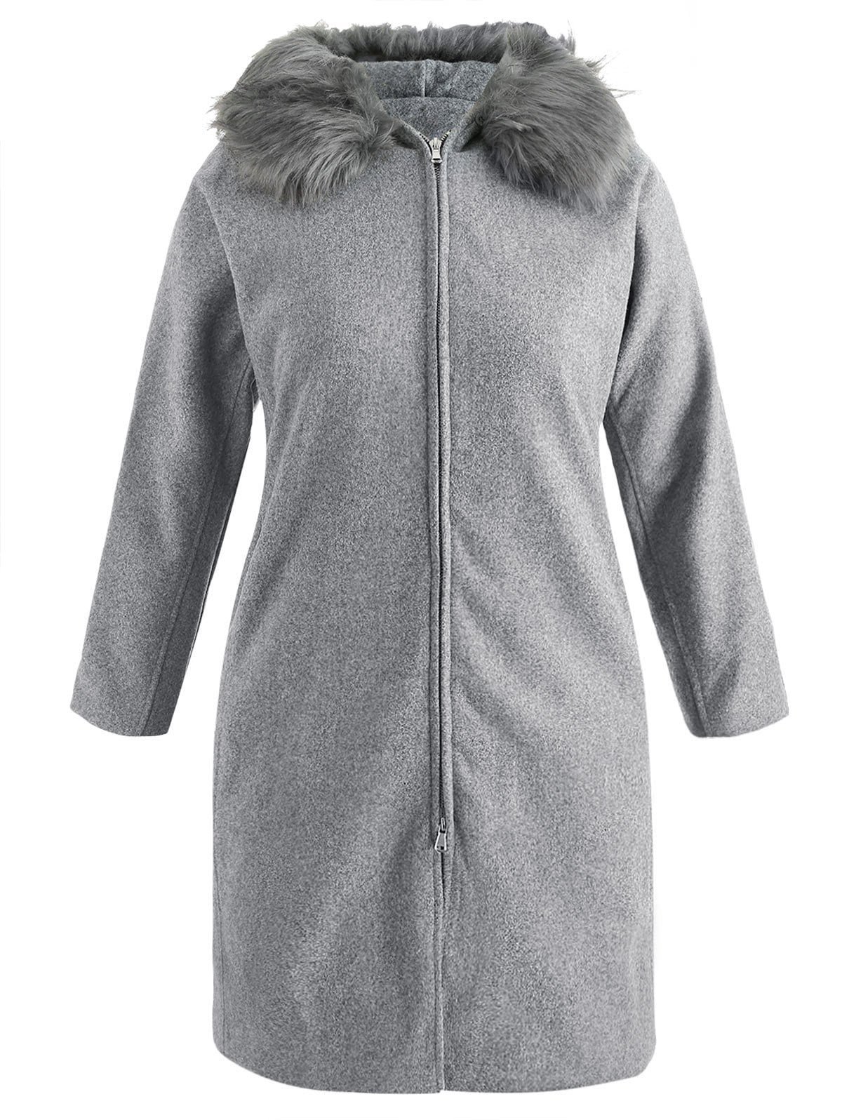 Plus Size Side Pockets Hooded Coat