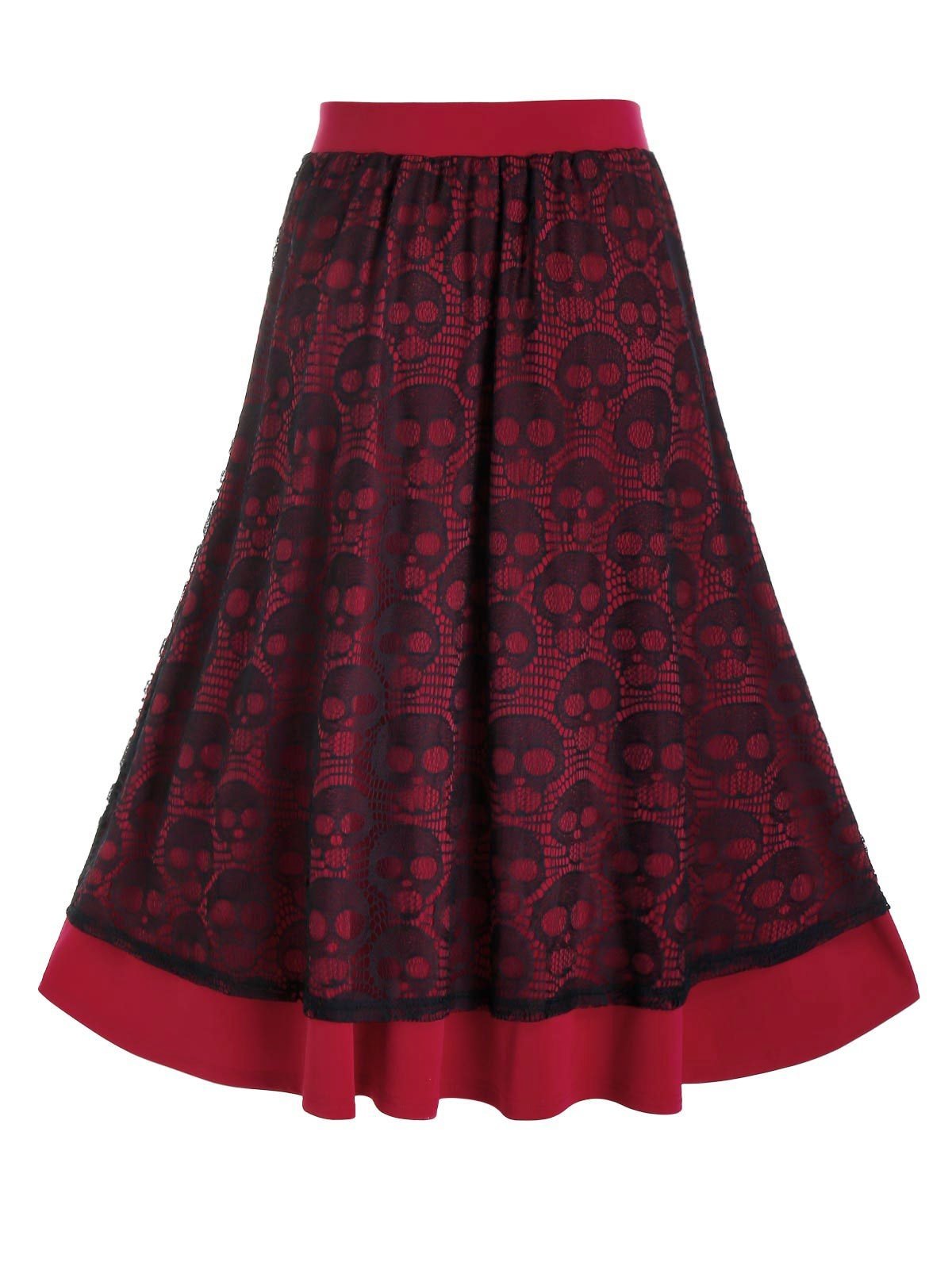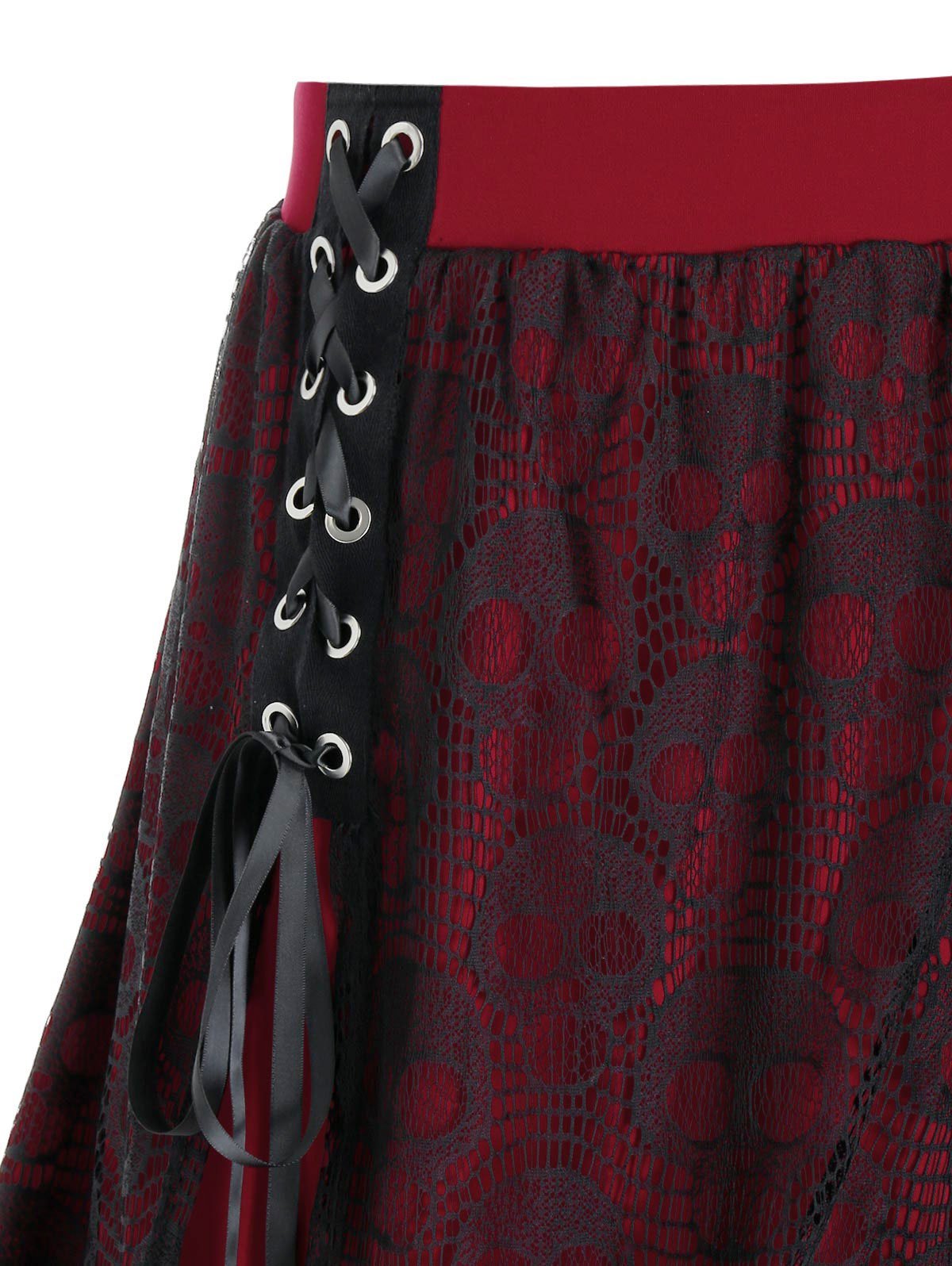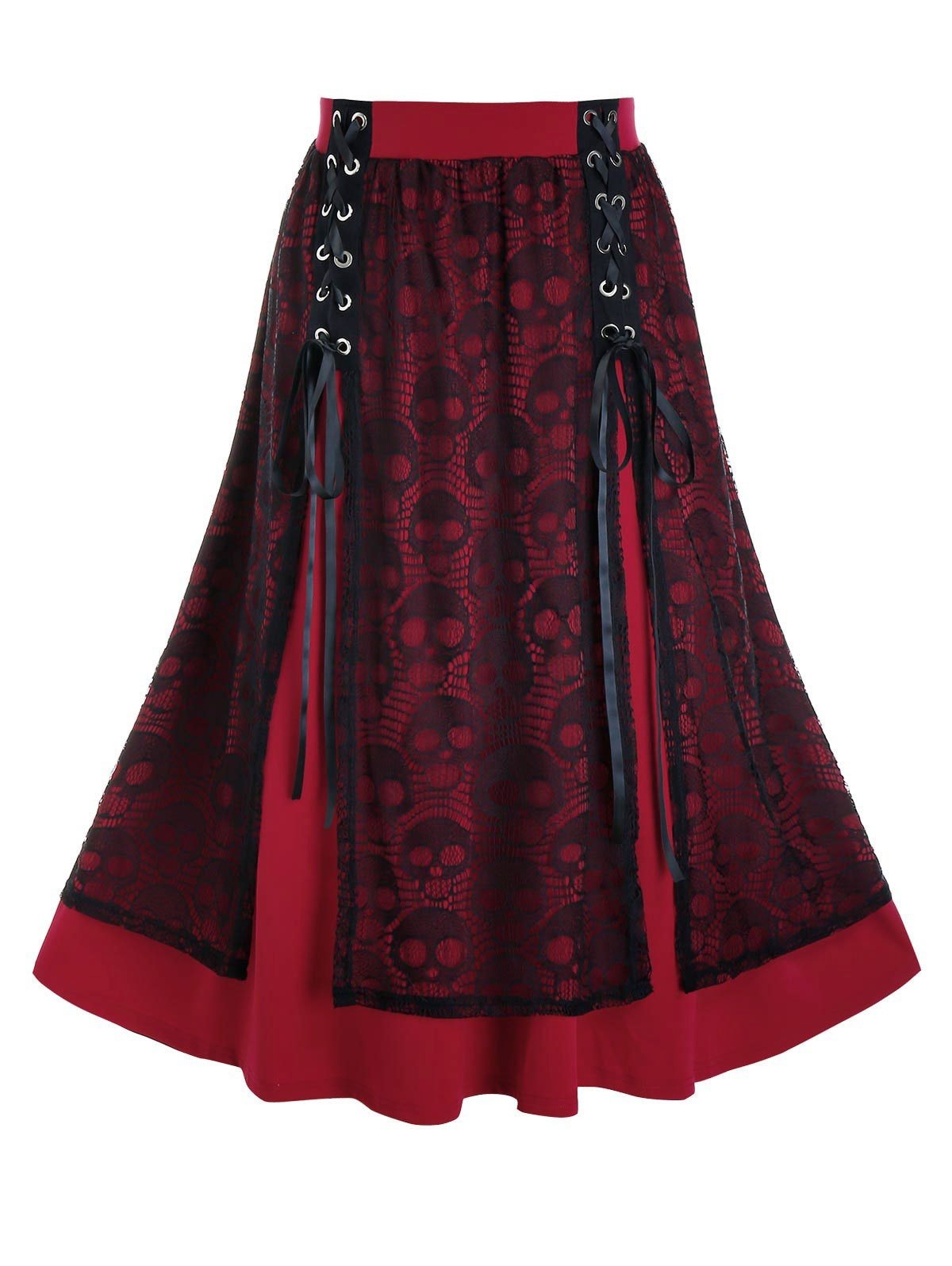 Plus Size Skull Lace A Line Lace-up Skirt