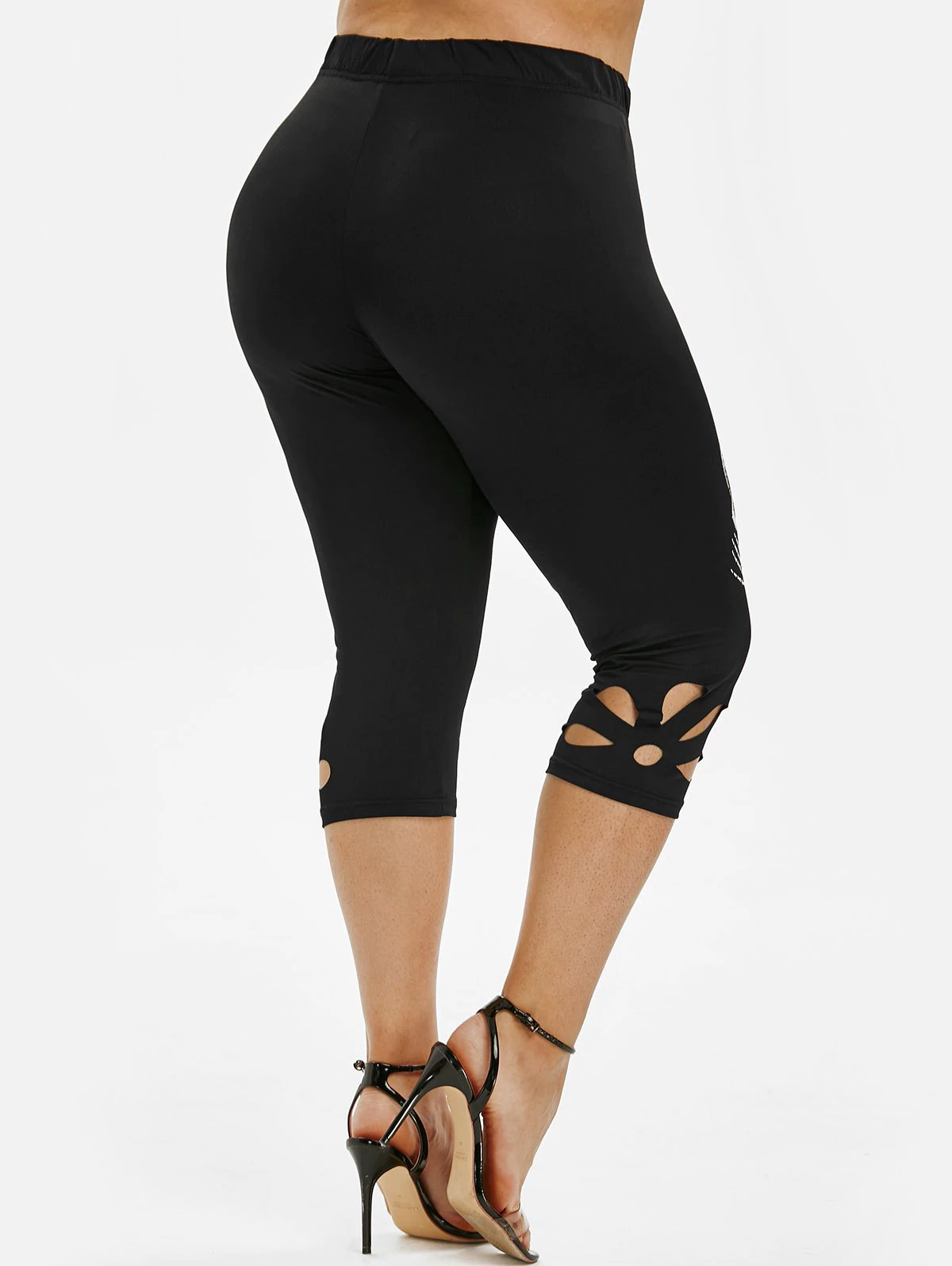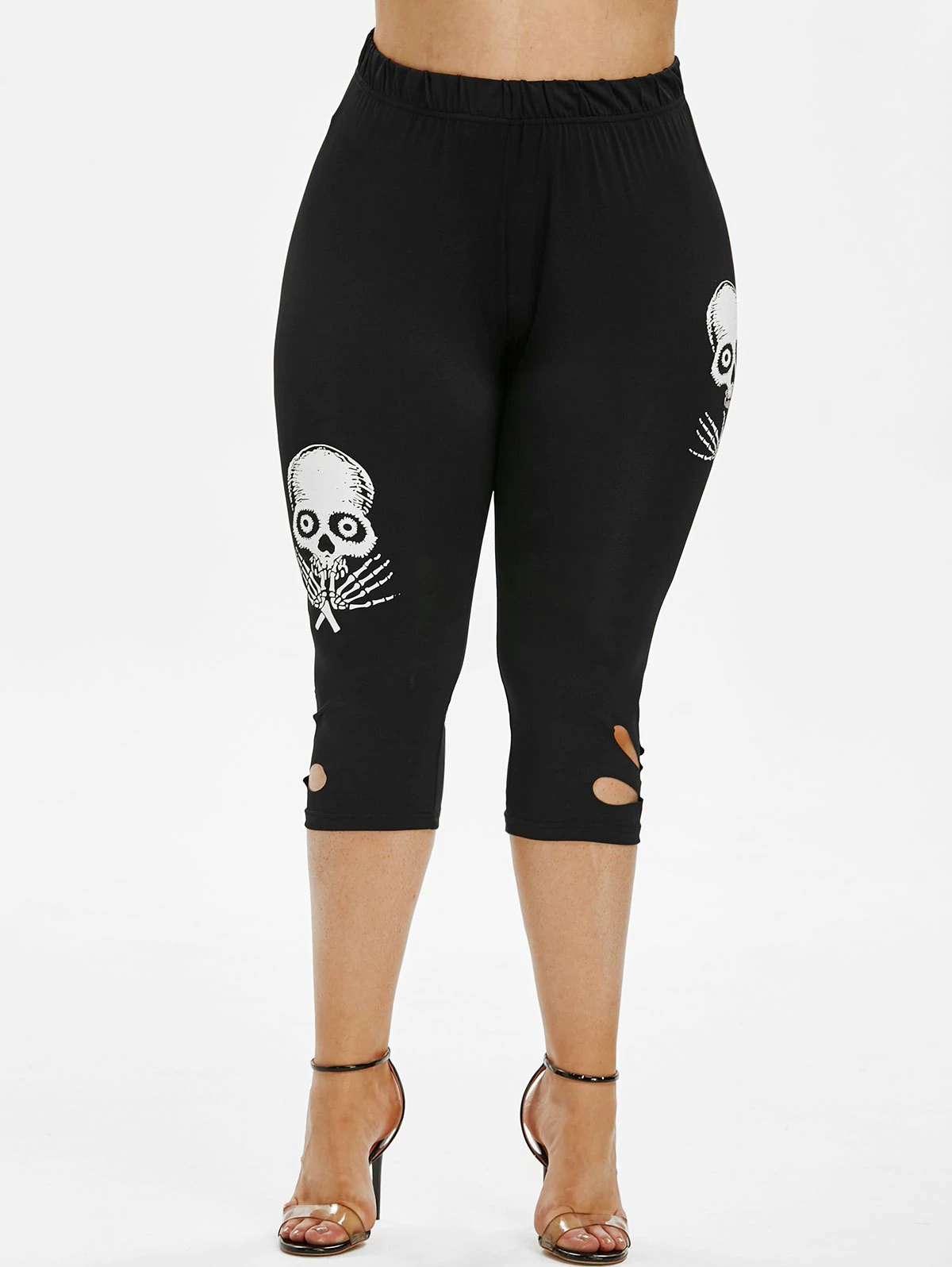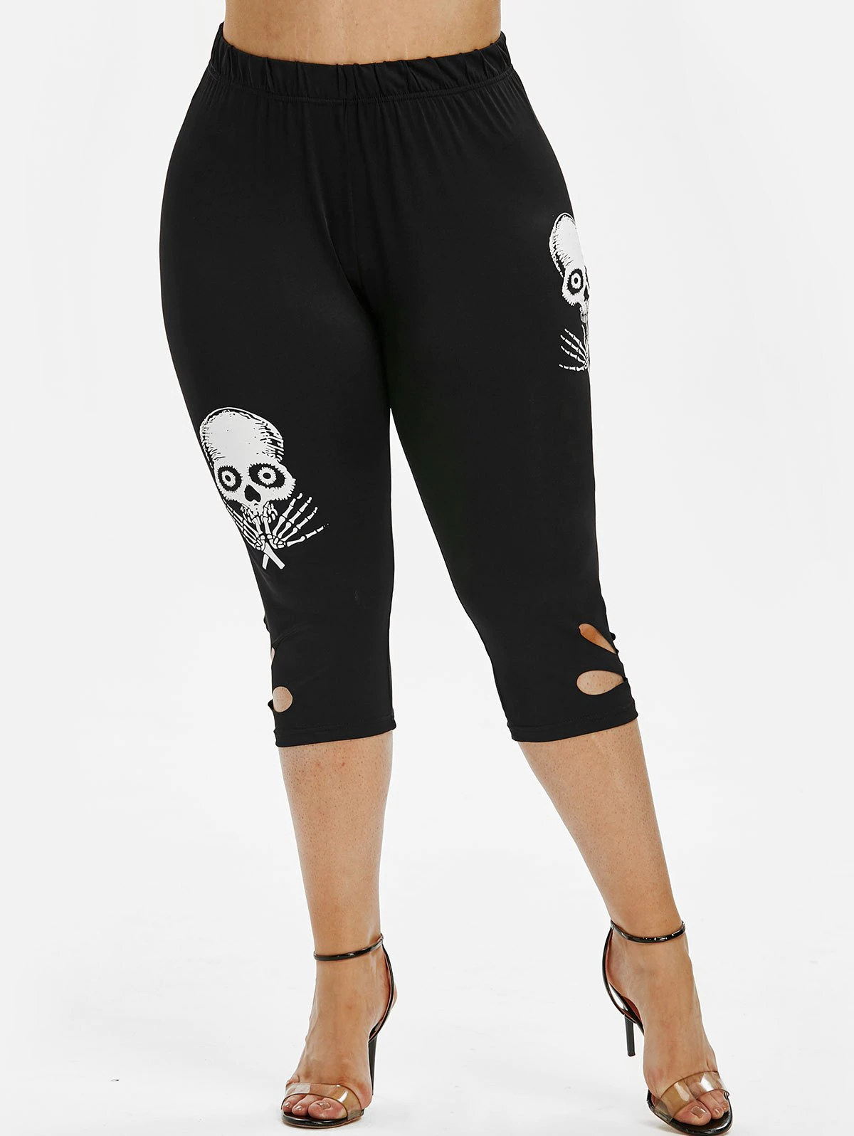 Plus Size Skull Pattern Hollow Out Cropped Leggings