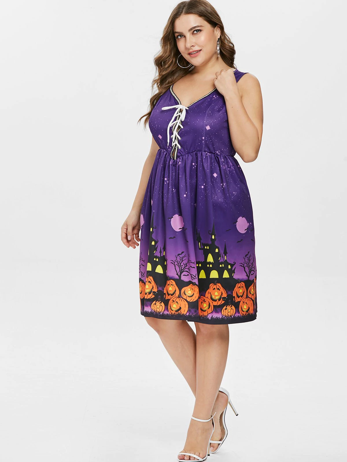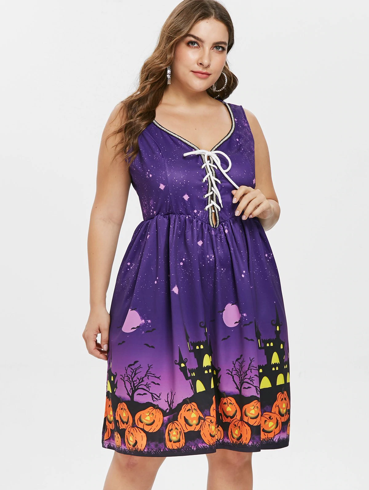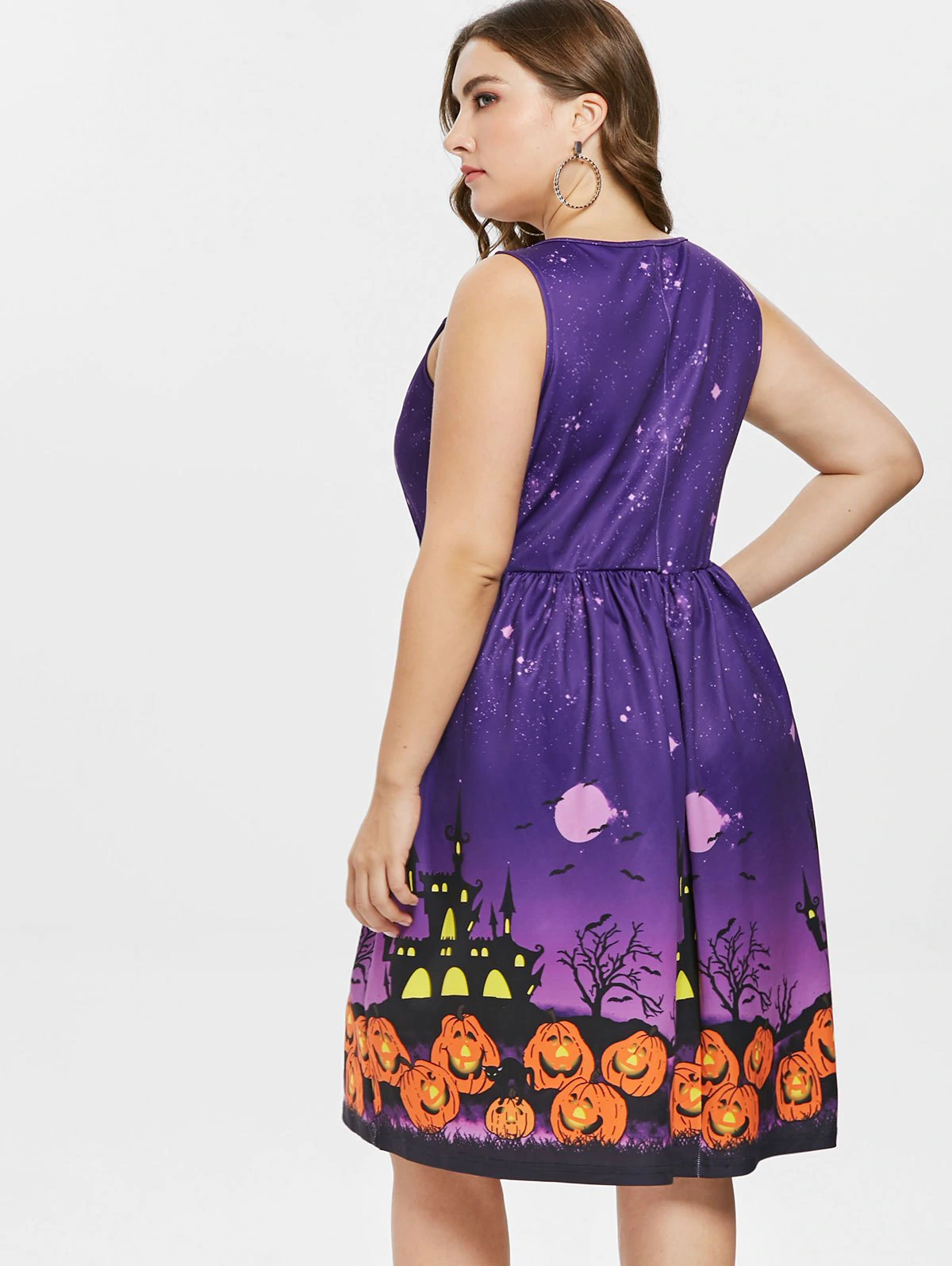 Plus Size Sleeveless Pumpkin Lantern Halloween Dress