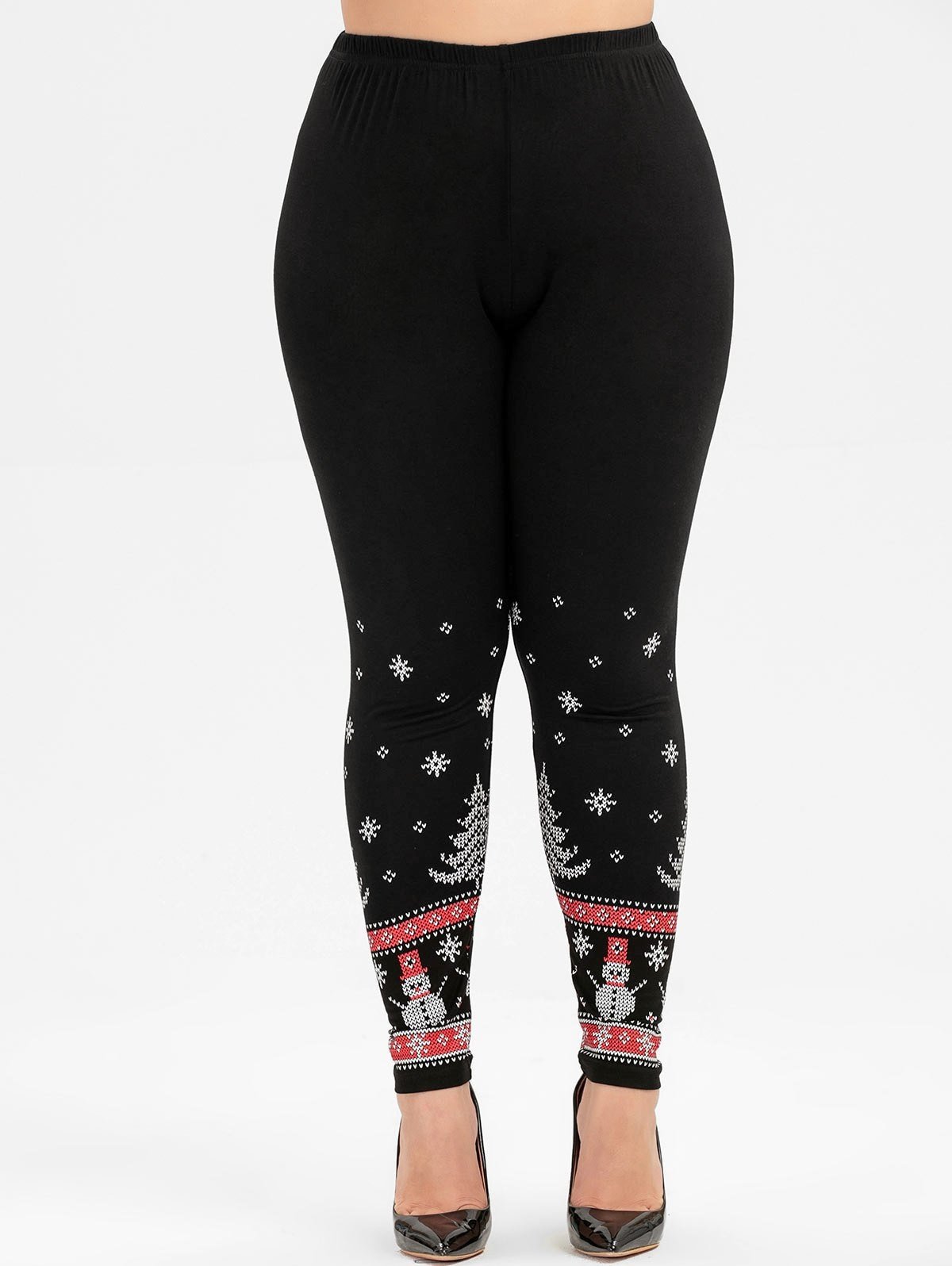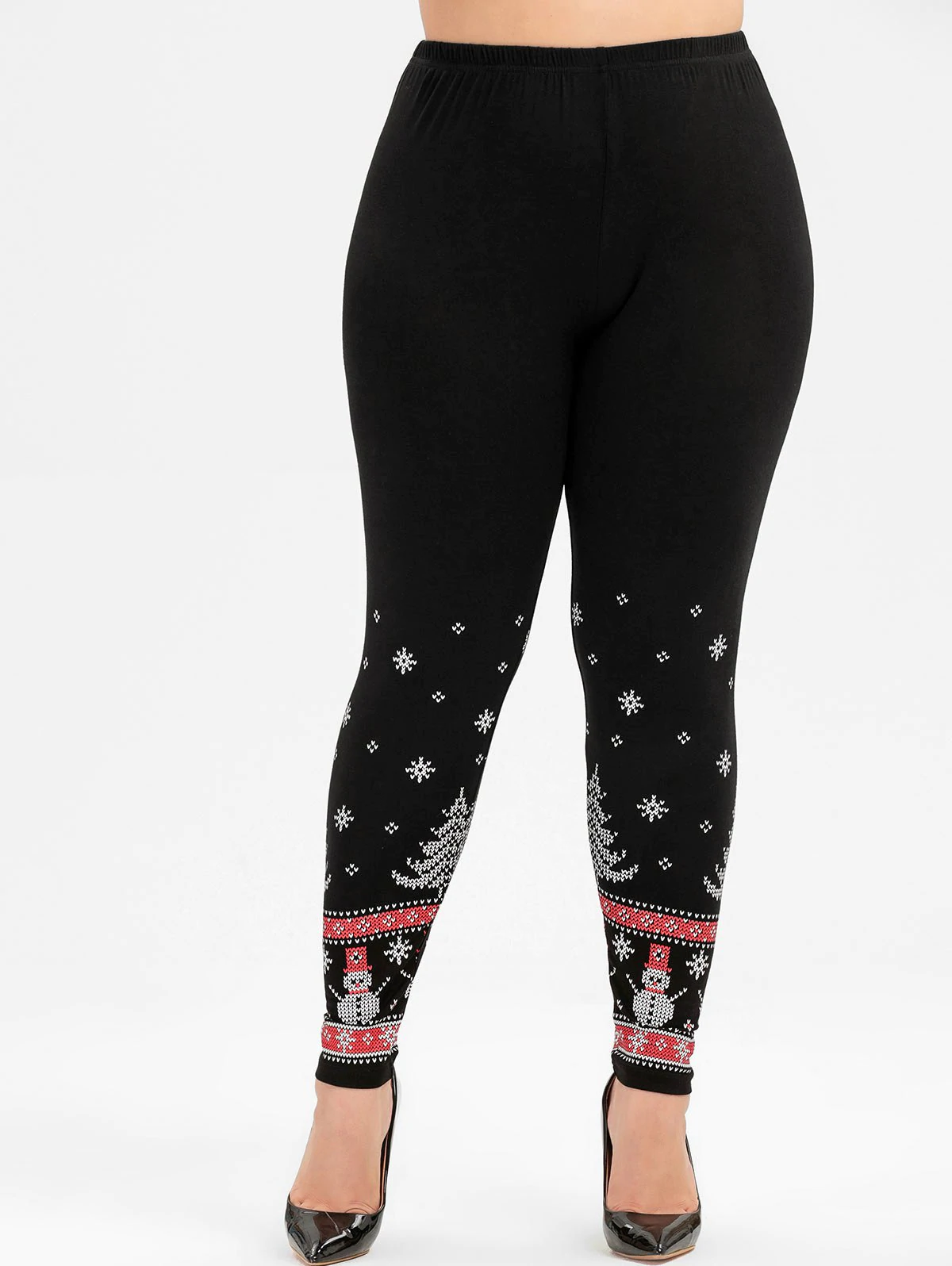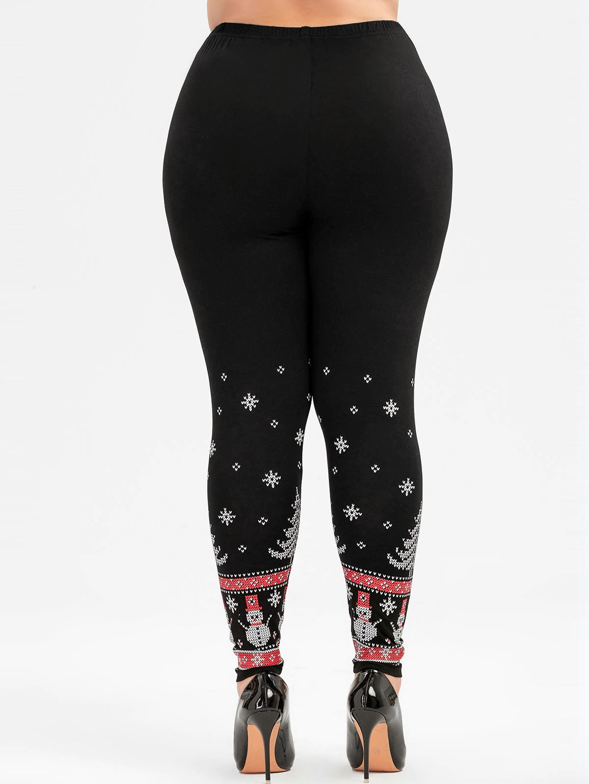 Plus Size Snowman Snowflake Print Christmas Leggings
