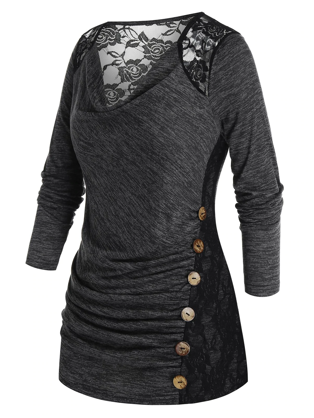 Embellishment: Button,Lace,Ruched,See Thru