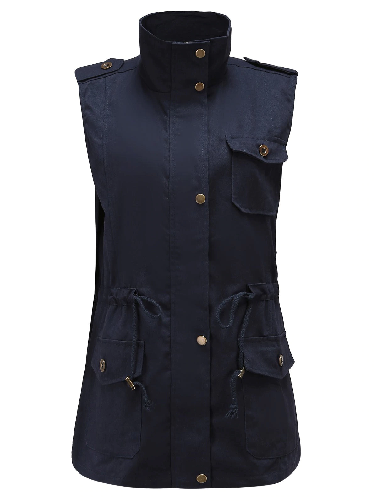 Plus Size Stand Up Collar Front Pockets Vest