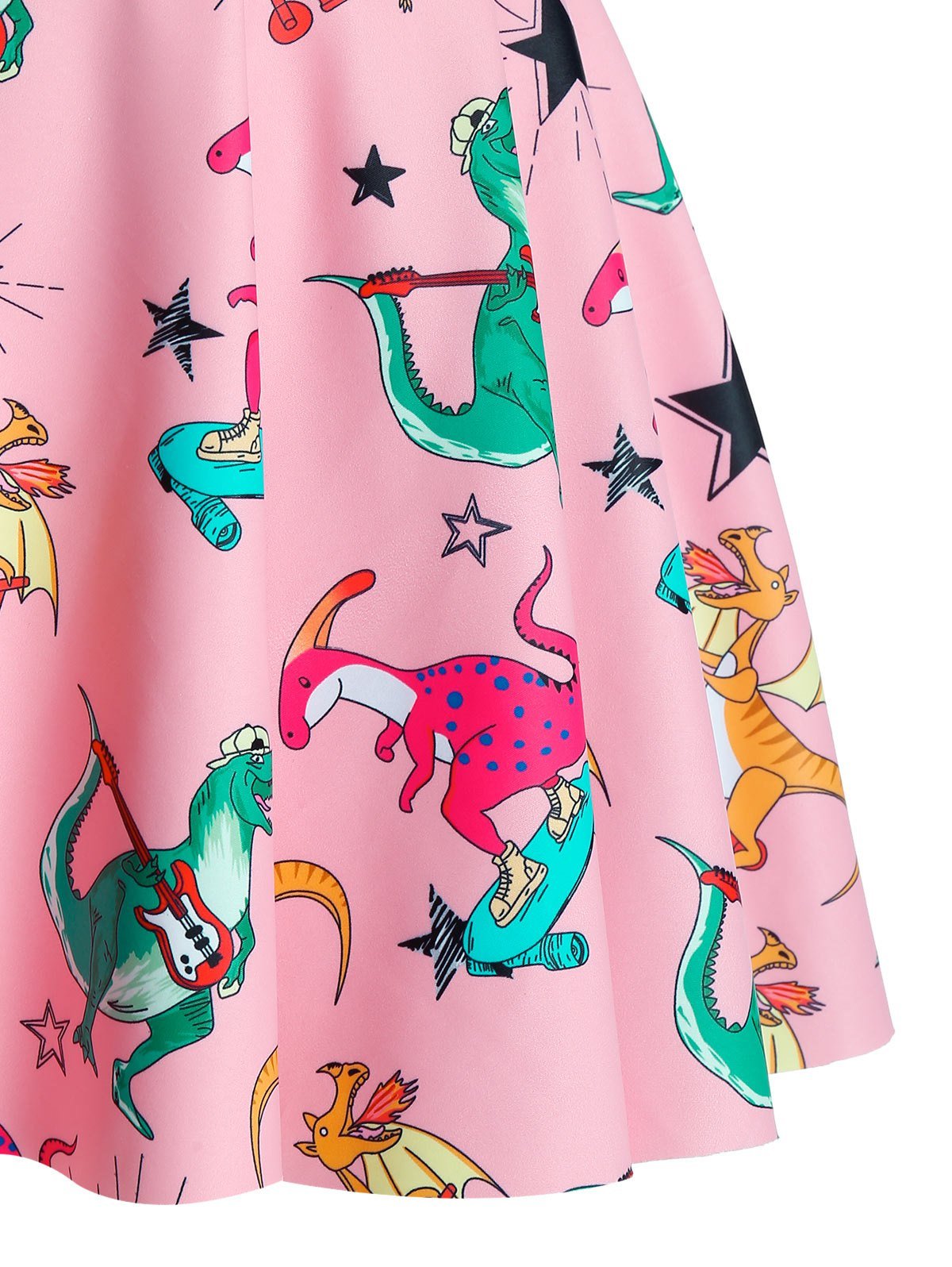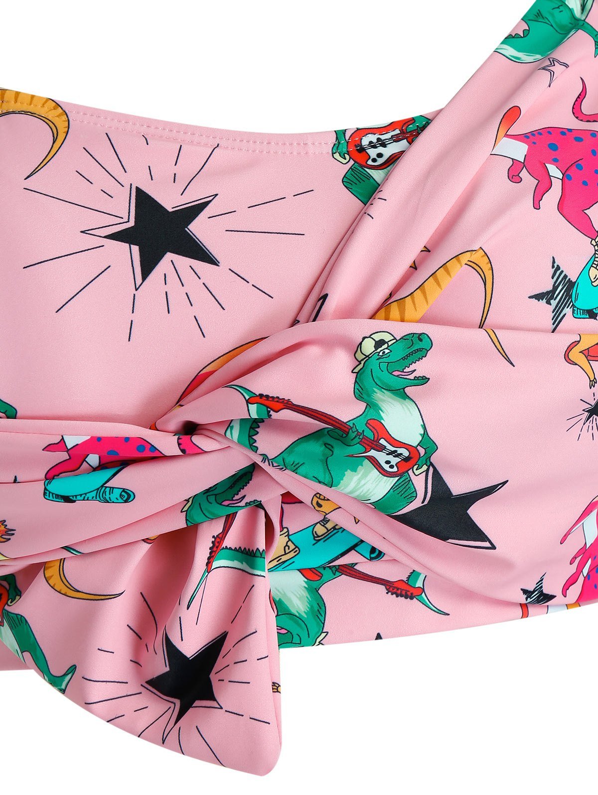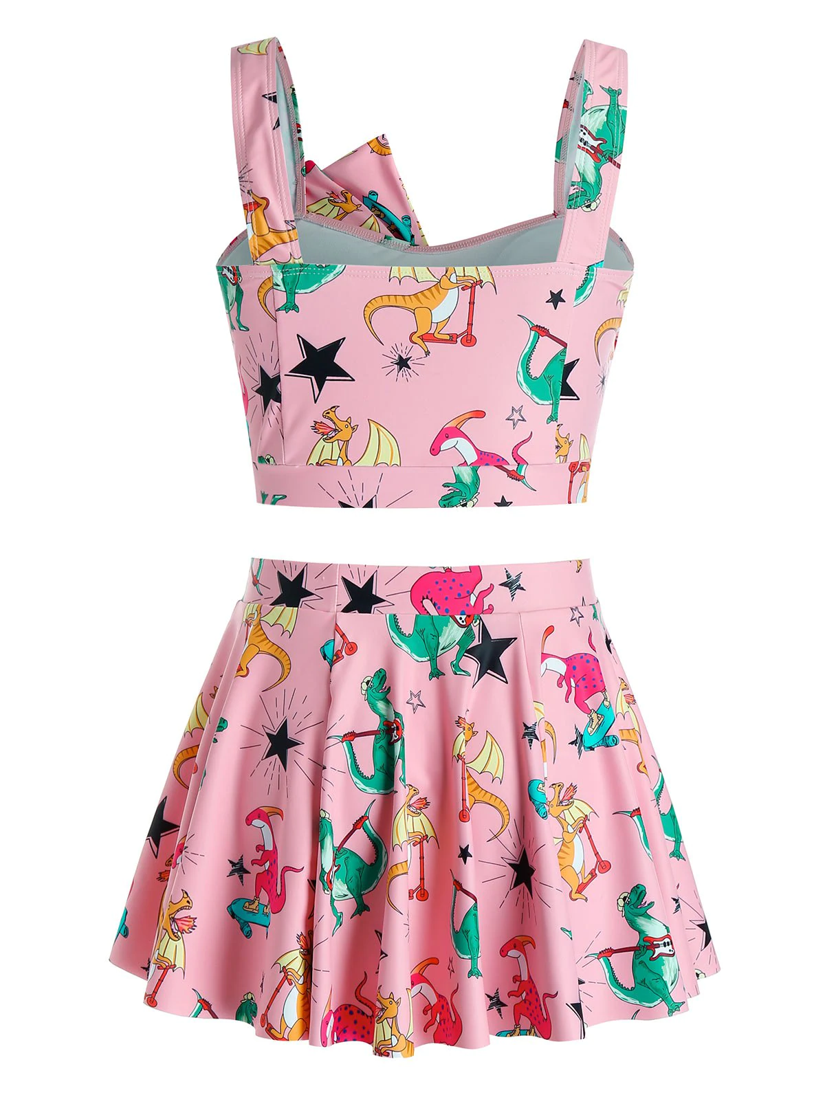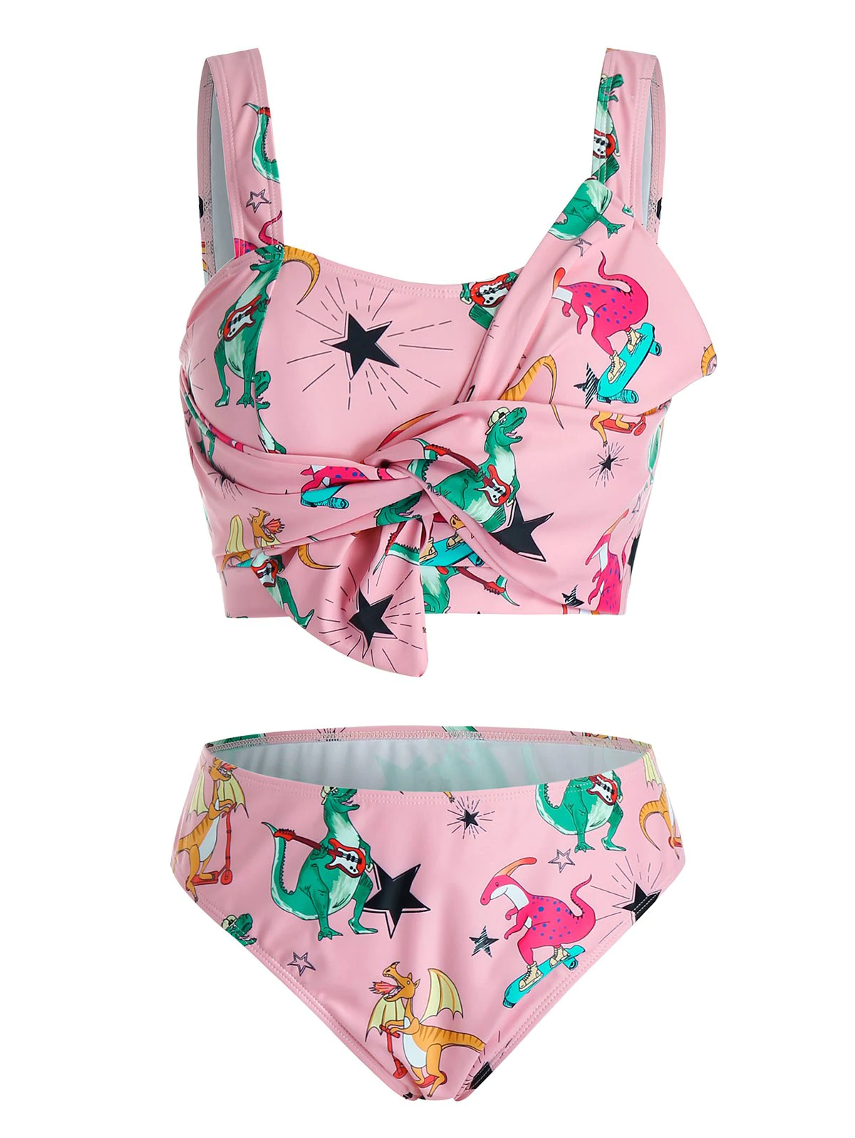 Plus Size Star Dinosaur Knotted Tankini Swimwear with Skirt