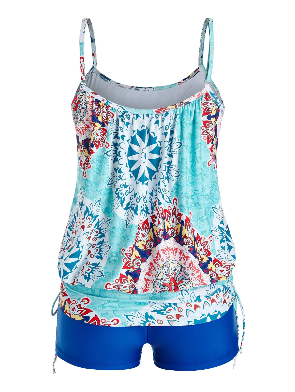 Plus Size Tribal Print Cinched Tankini Swimwear