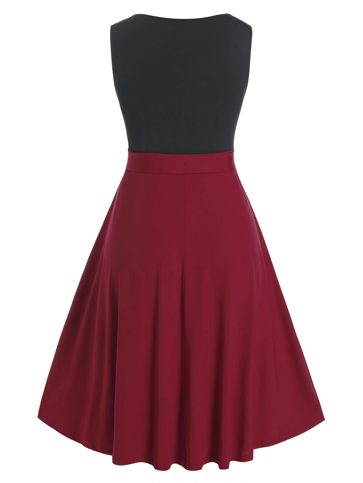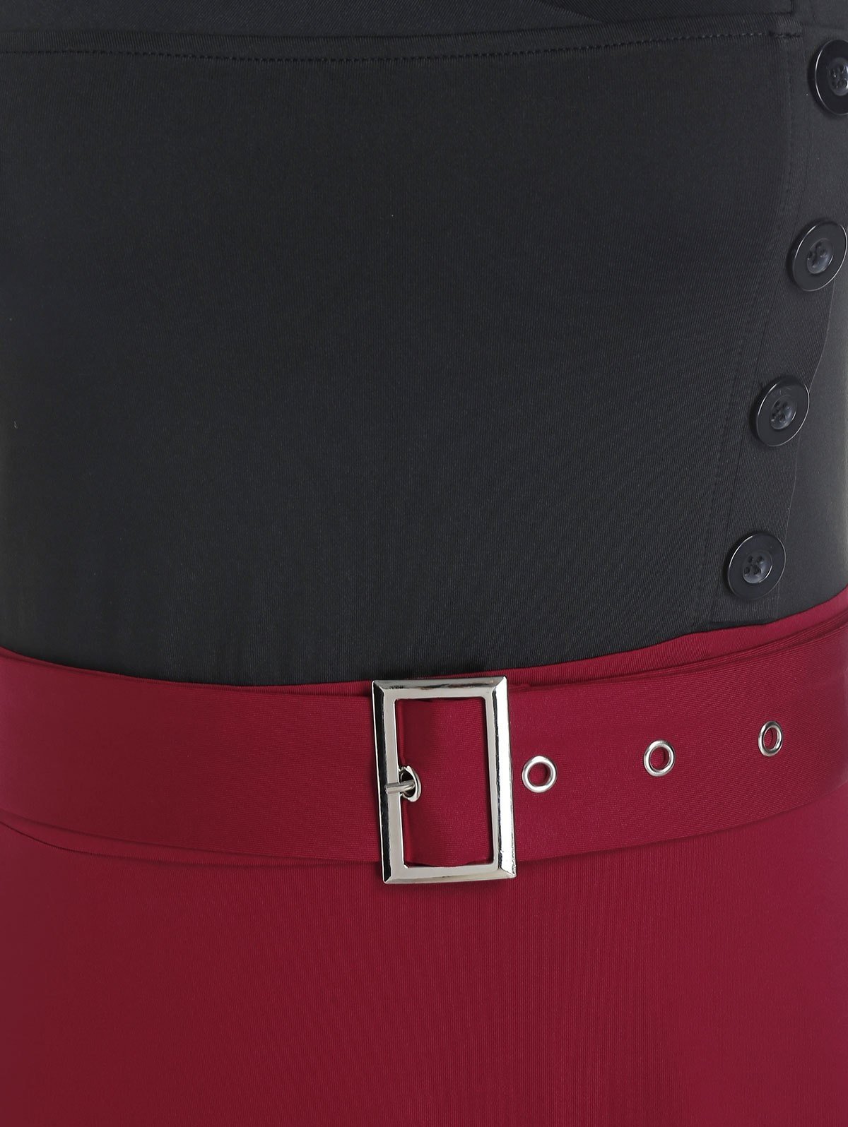 Plus Size Two Tone Bicolor Eyelet Buckle A Line Dress