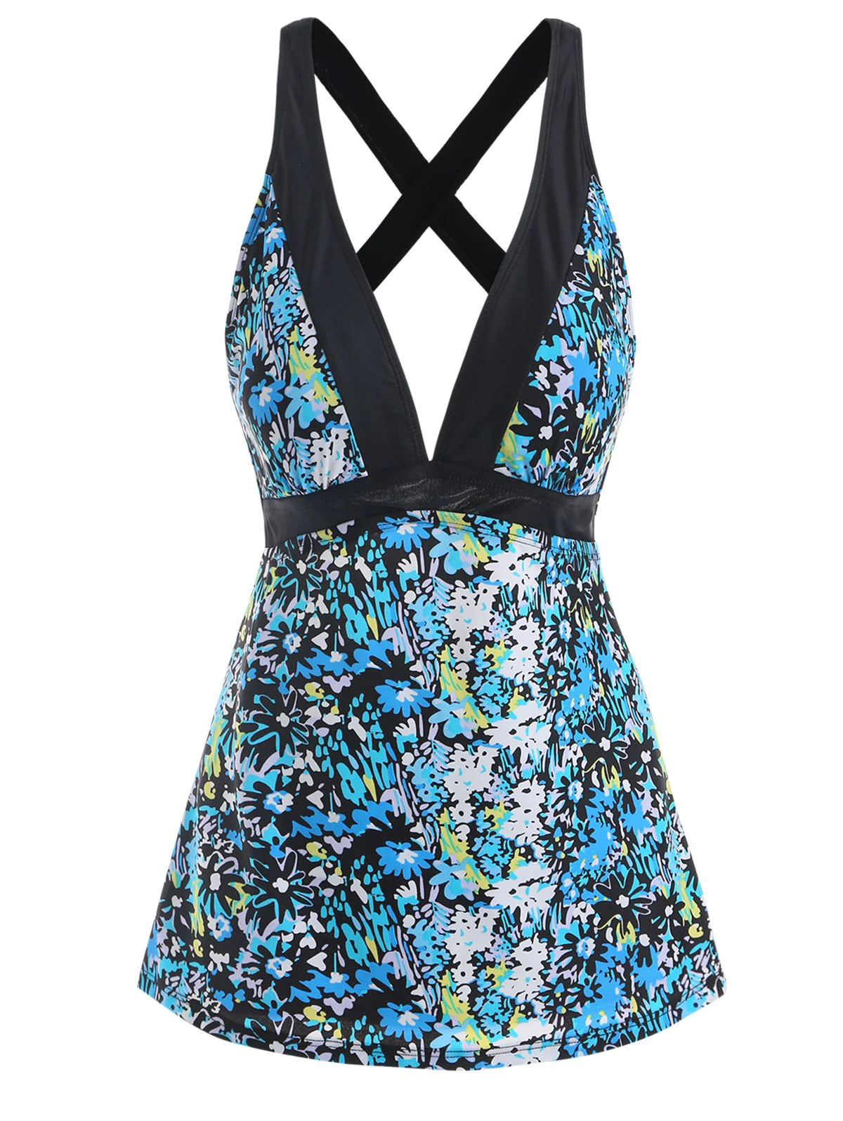 Printed Criss Cross Tankini Top