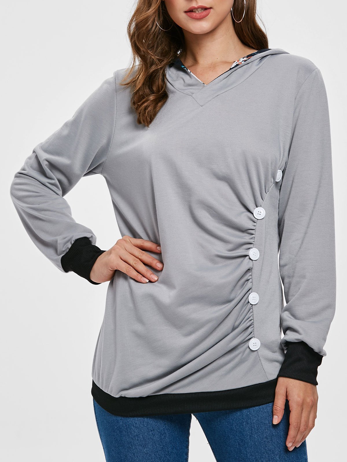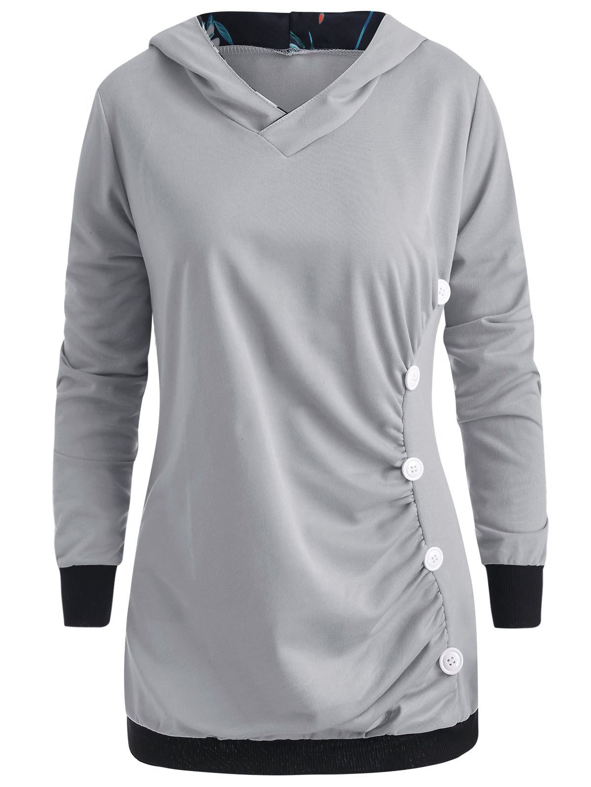 Printed Panel Button Pullover Hoodie