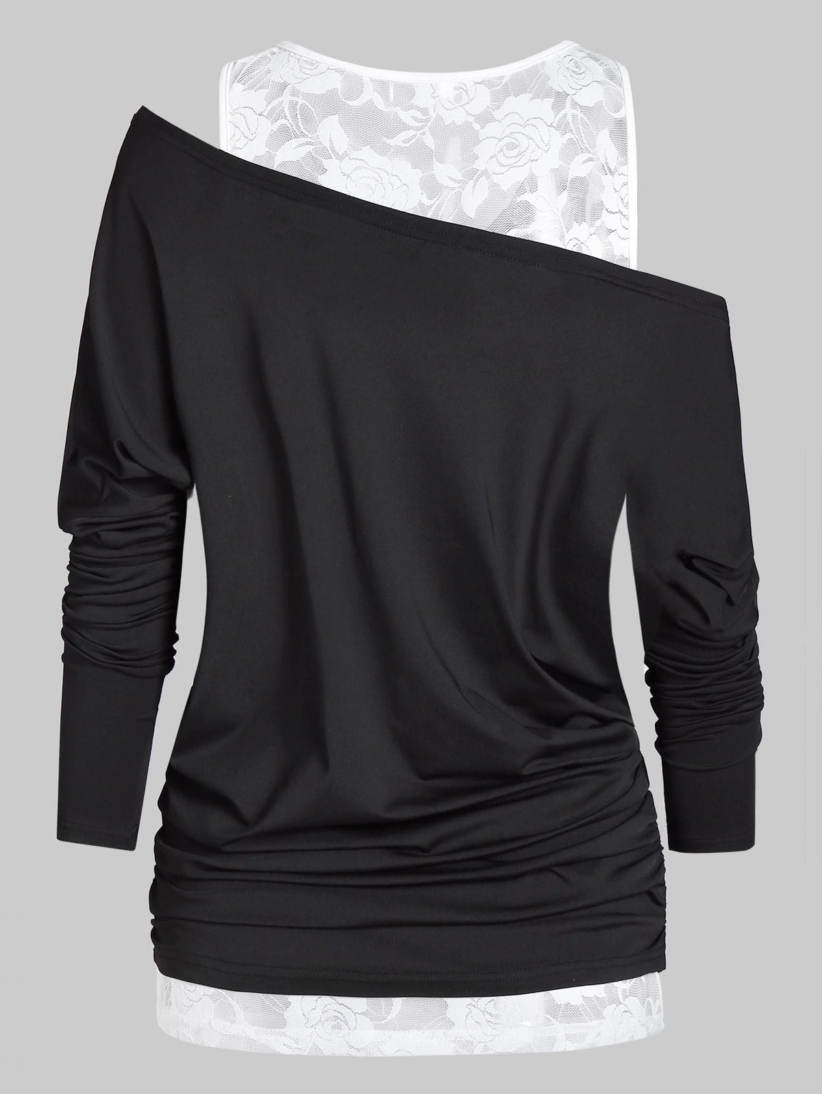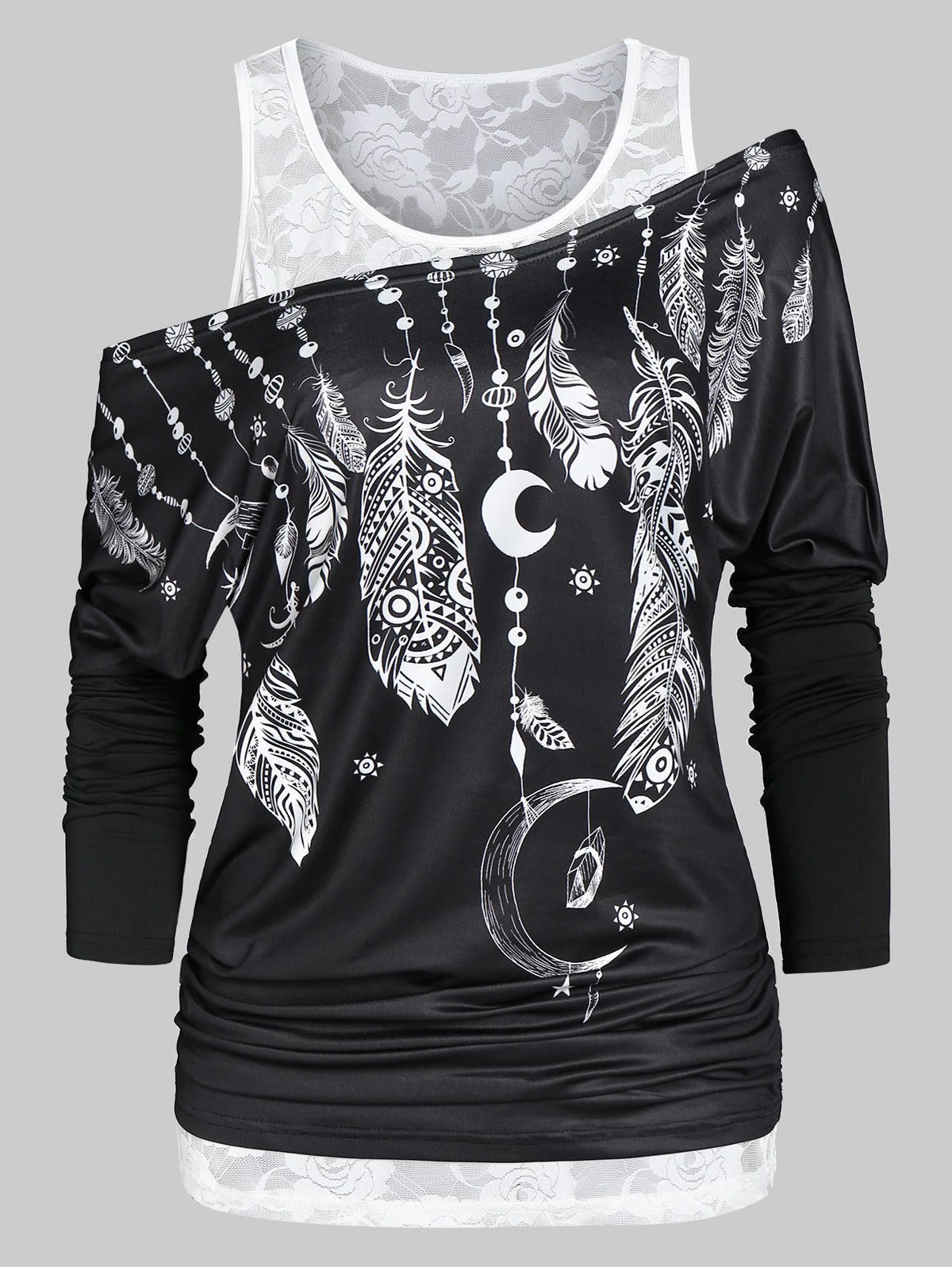 2 reviews for Printed Skew Collar T Shirt with Lace Tank Top