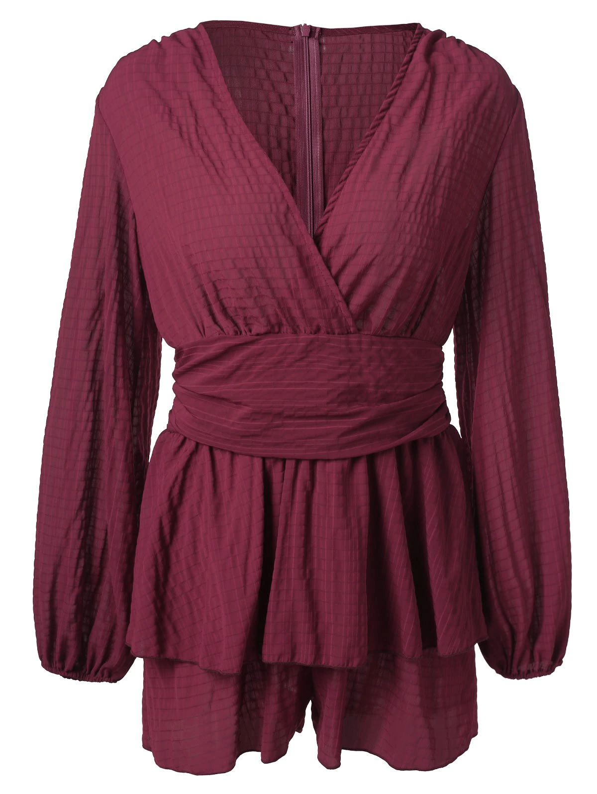 Puff Sleeve High Waist Surplice Romper