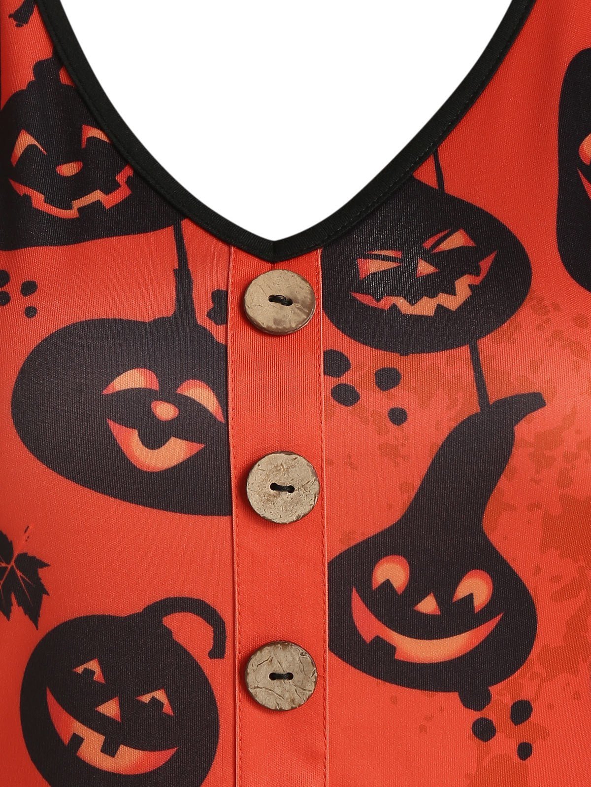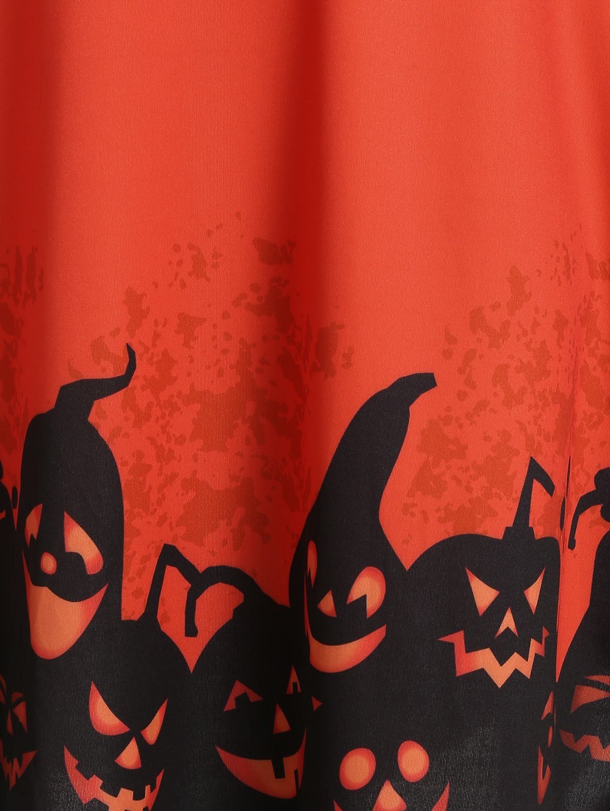 Pumpkin Print Fit And Flare Asymmetric Dress