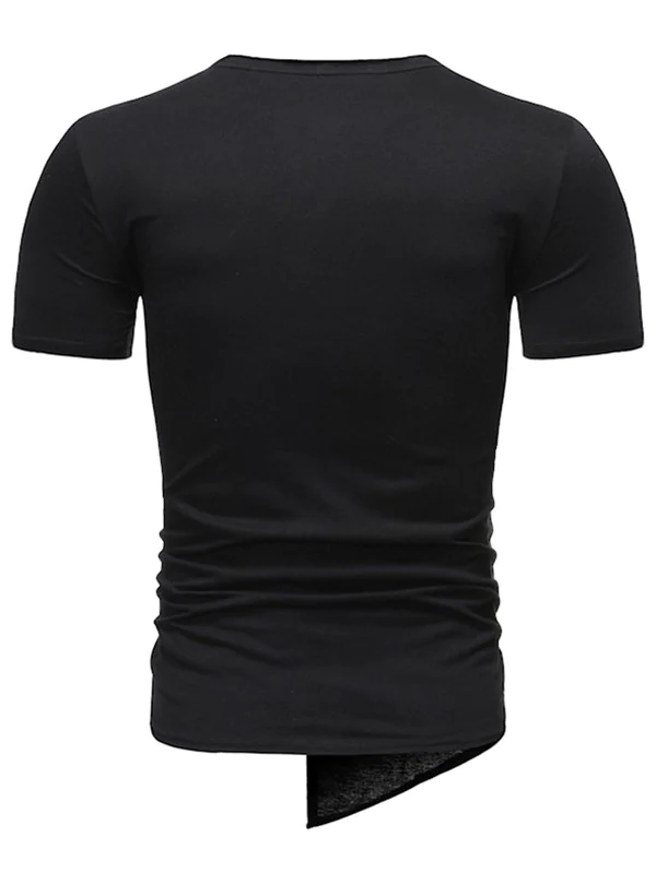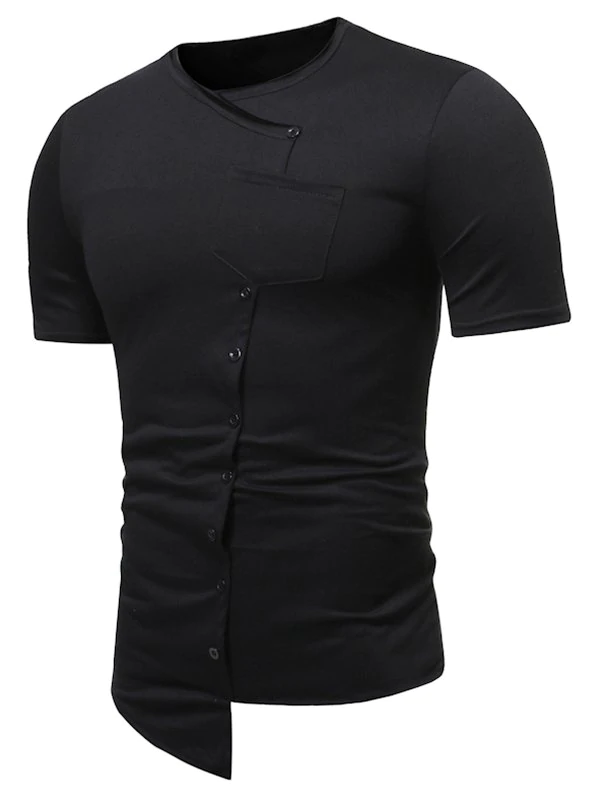 Pure Color Mock Button Pocket Asymmetrical T Shirt