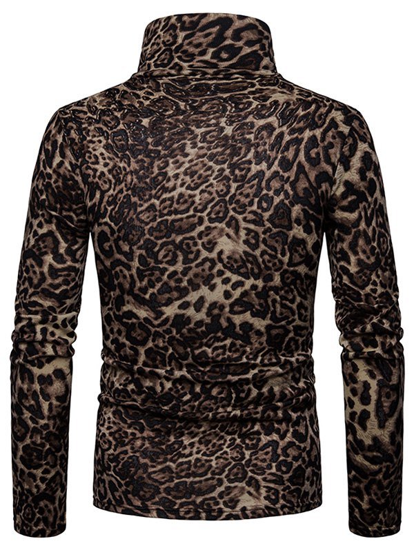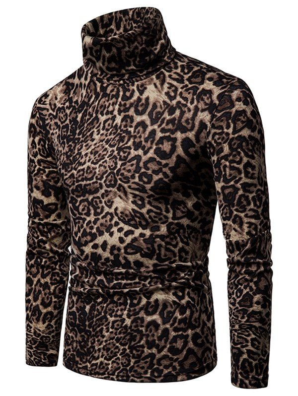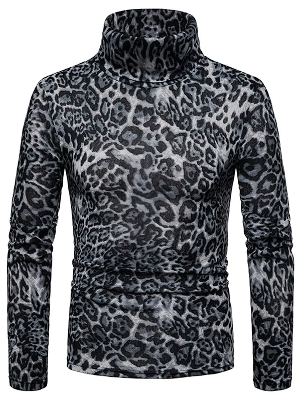 Q141 Men Plus Velvet Warm High Collar Leopard Long Sleeve Bottom