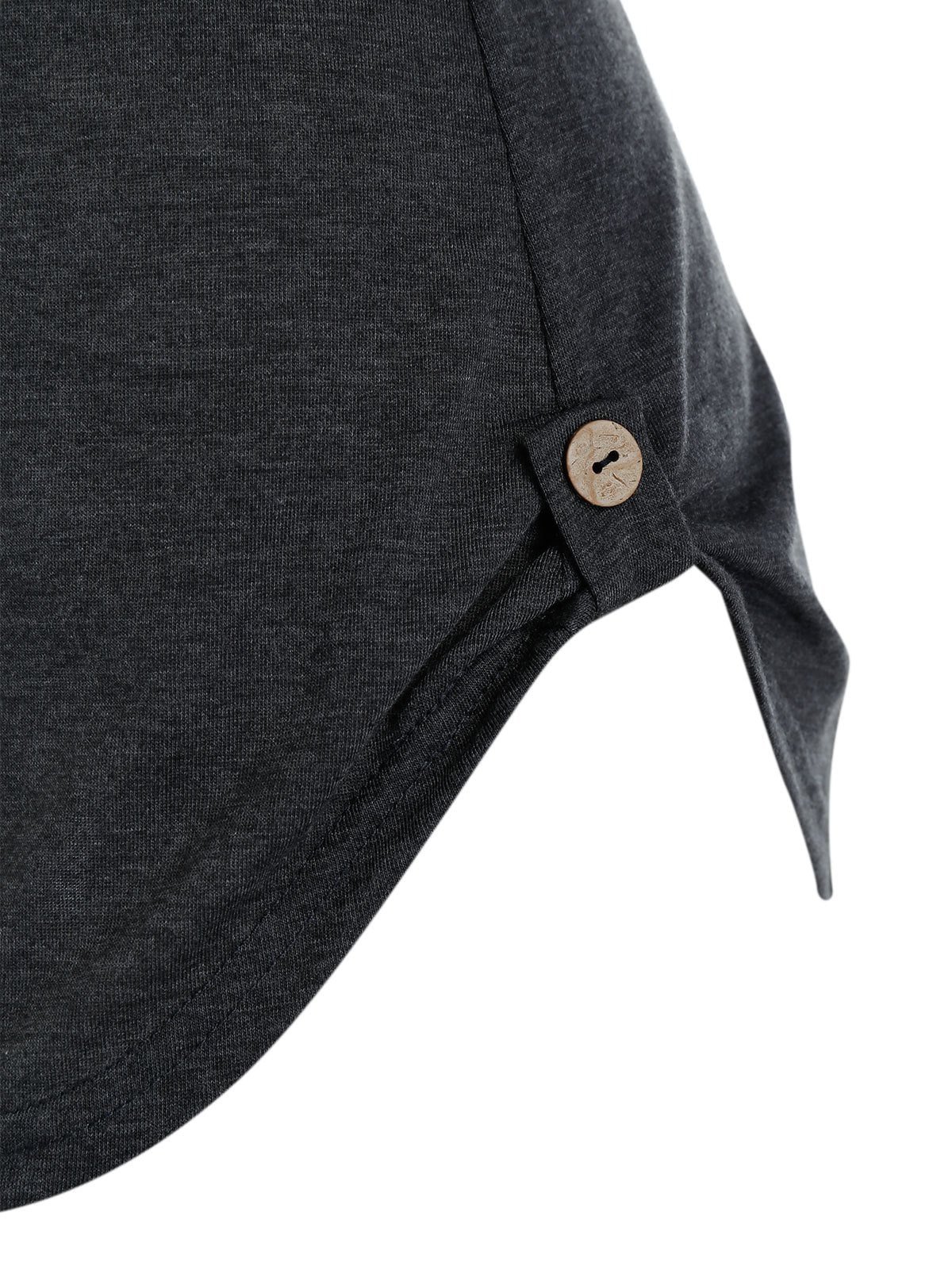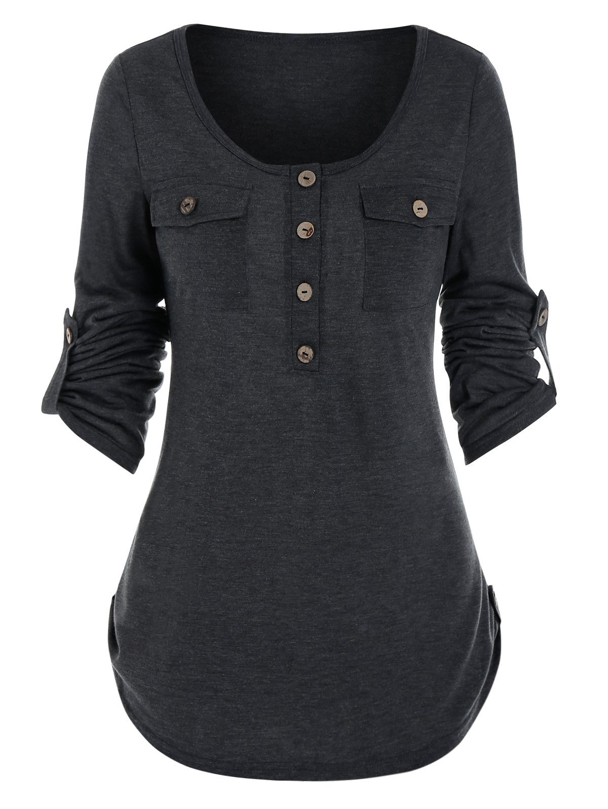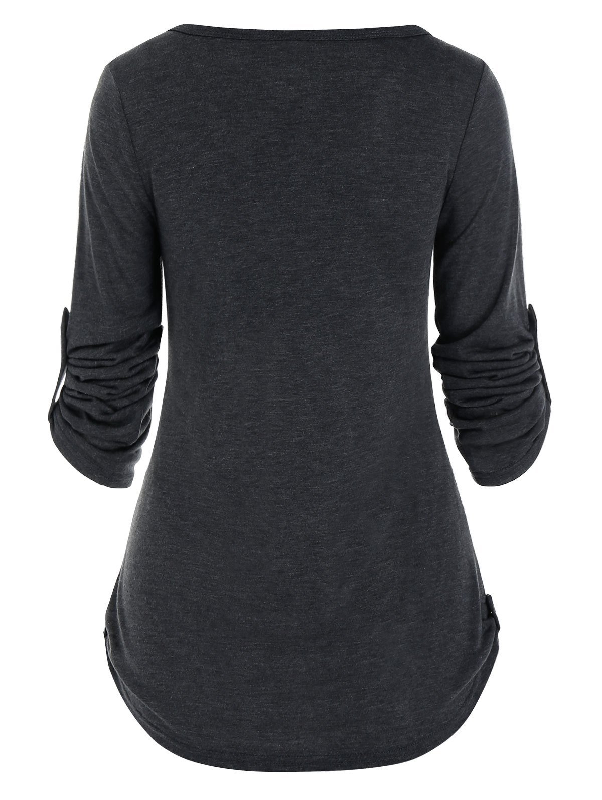 Round Collar Buttons Roll Up Sleeve T-shirt