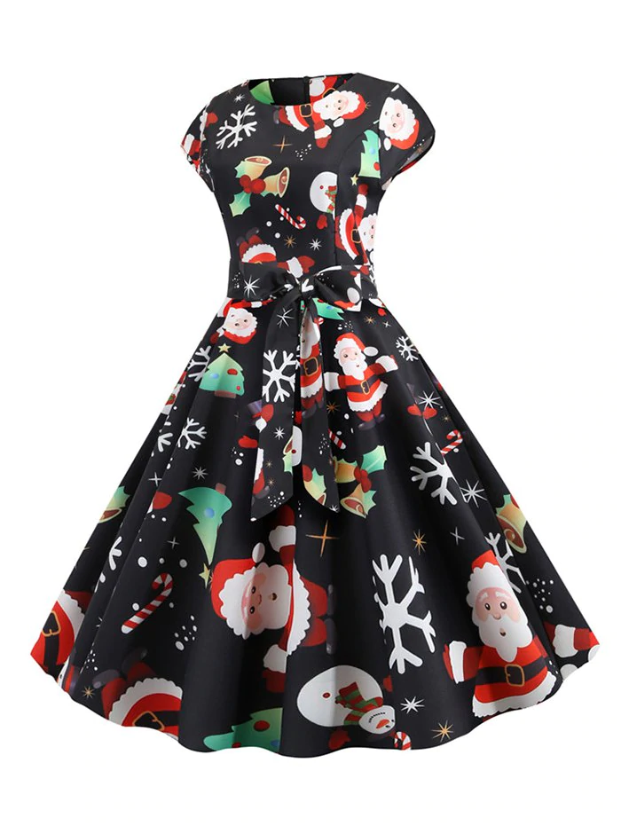 2 reviews for Santa Claus Snowman Belted Christmas Flare Dress