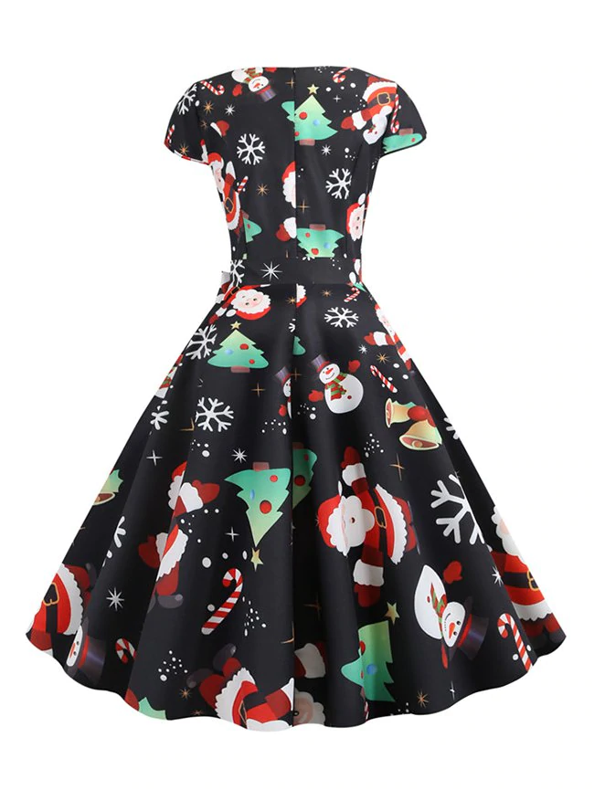 Plus Size Vintage Christmas Snowman Tree Print Pin Up Dress