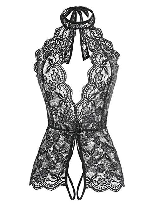 Scalloped Floral Lace Halter Teddy