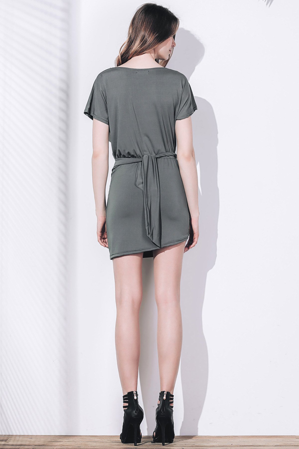 Sexy Short Sleeve Scoop Neck Asymmetrical Women’s Dress