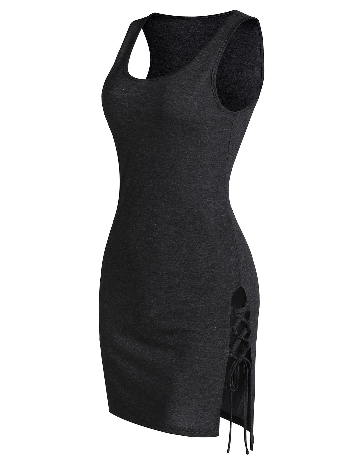 Side Slit Lace-up Heathered Sheath Tank Dress