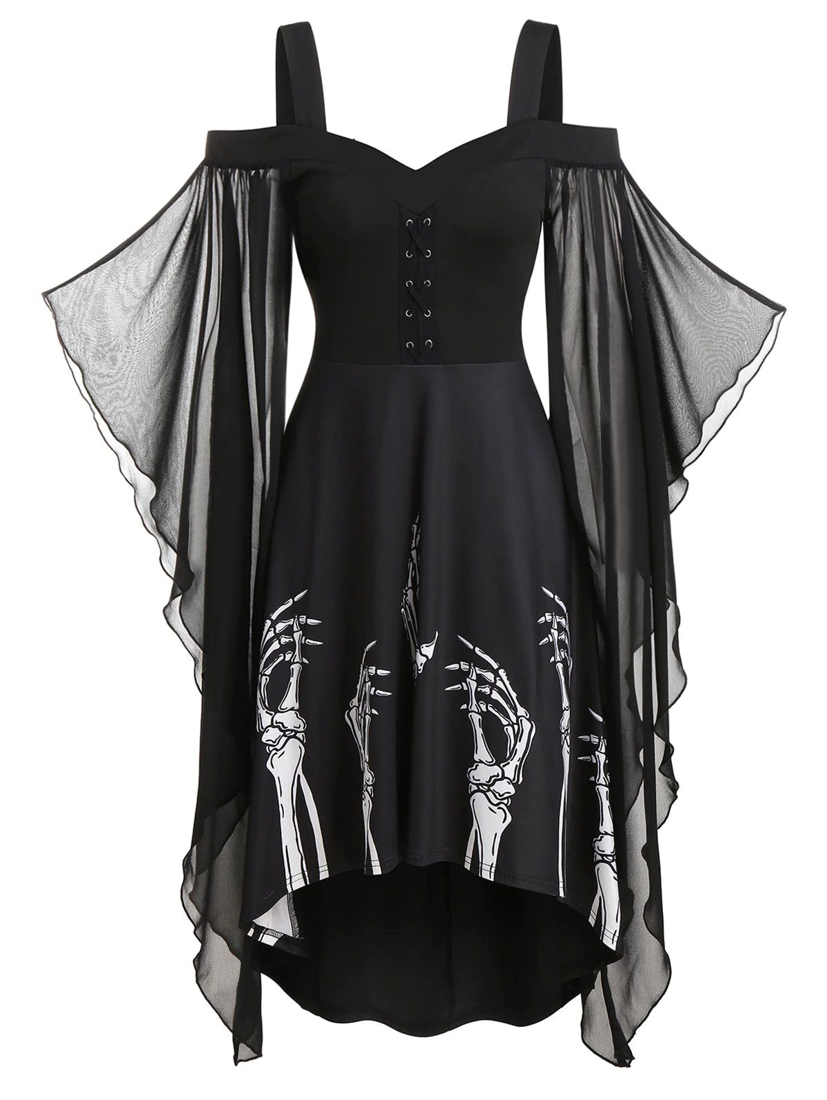 Skeleton Print Butterfly Sleeve High Low Dress