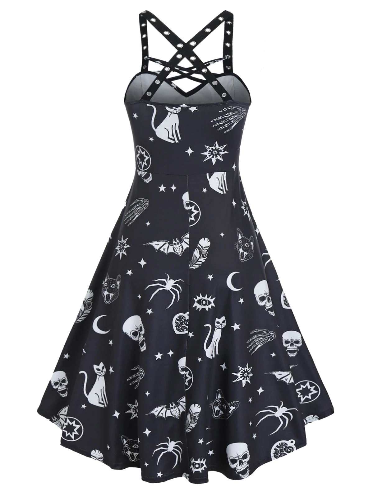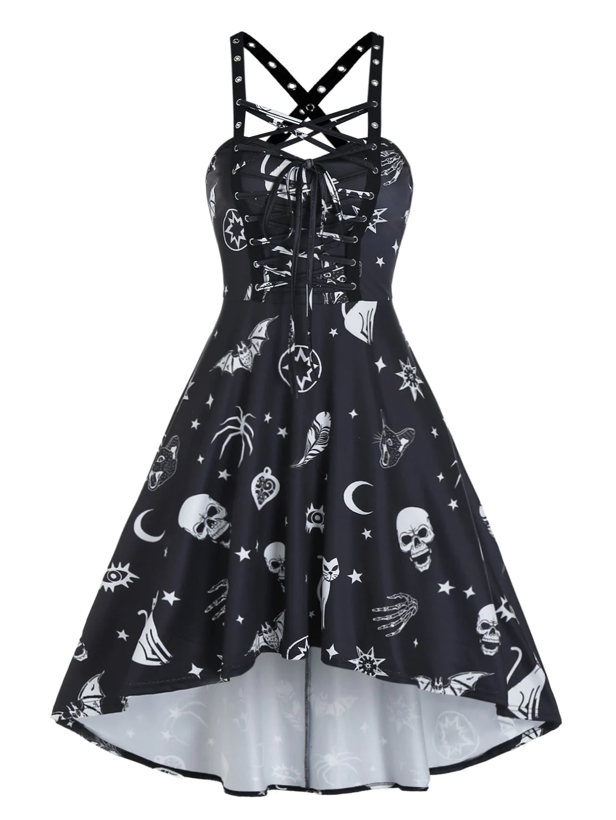 Skull Animal Print Cross Back Cami Dip Hem Dress