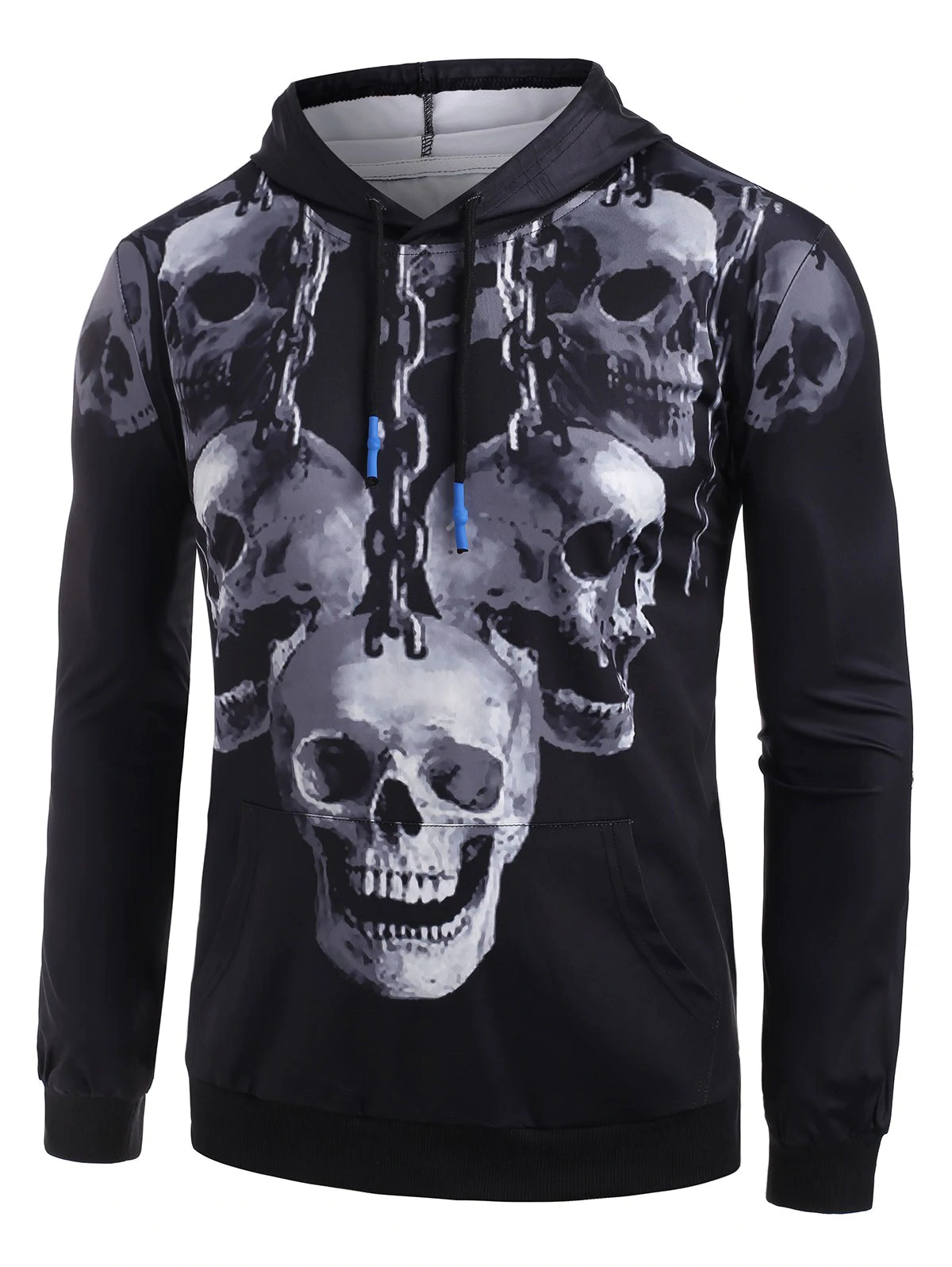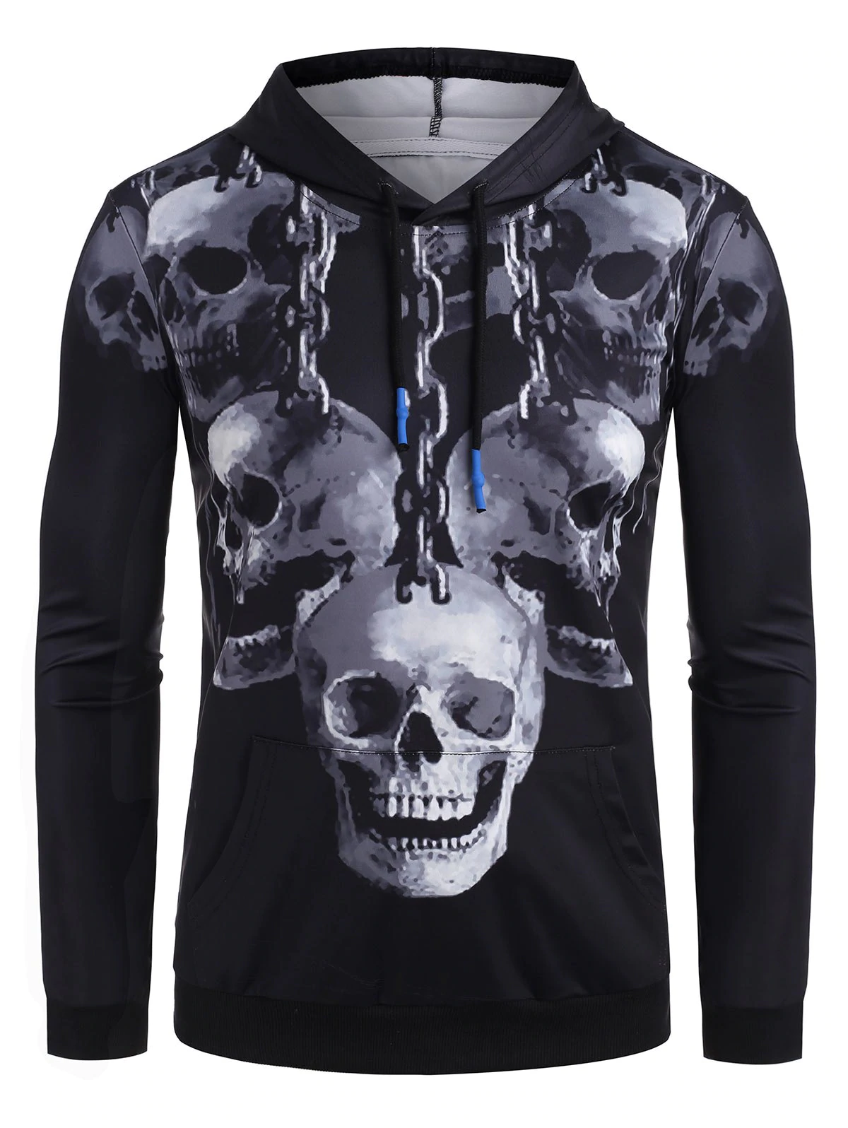 SKull Chain Print Kangaroo Pocket Hoodie