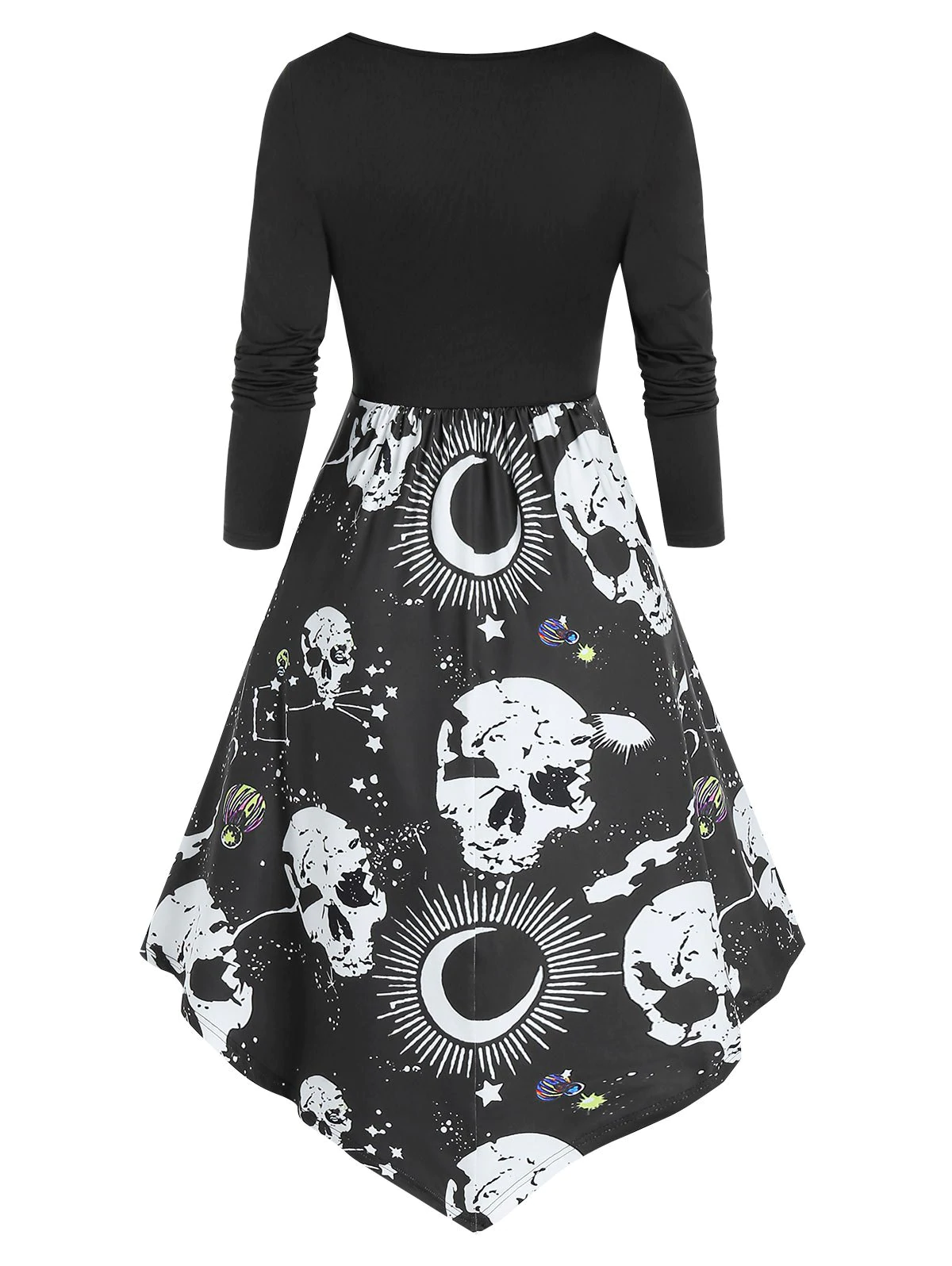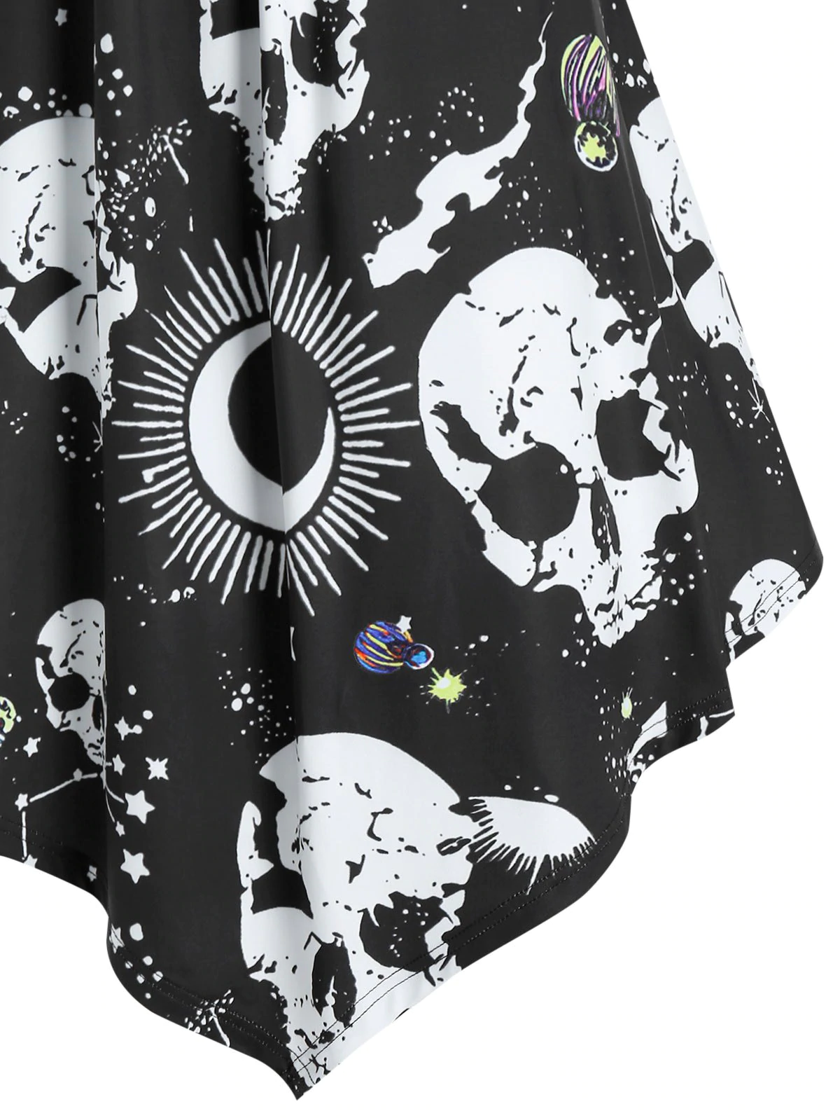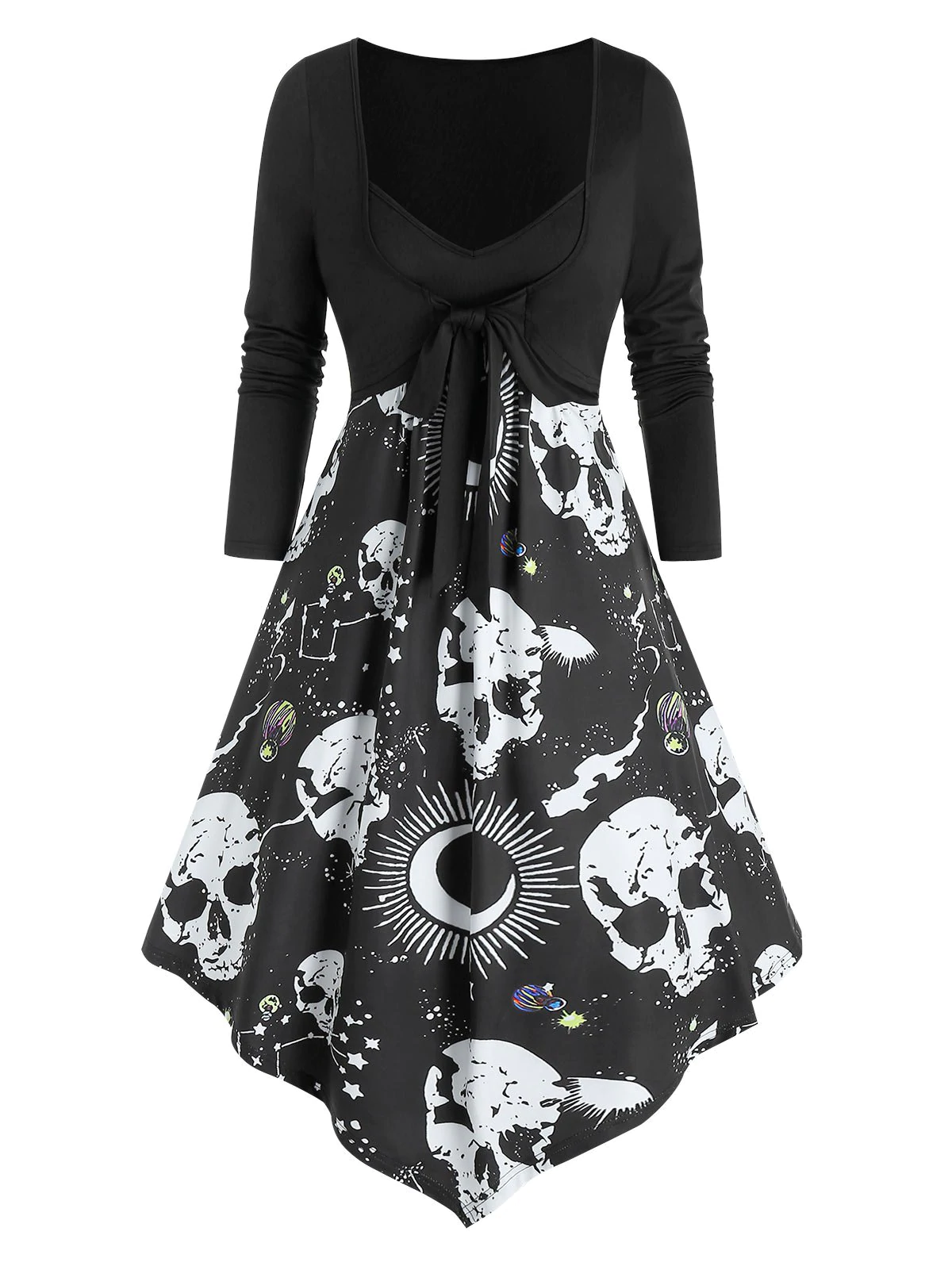 Skull Starry Print Faux Twinset Empire Waist Asymmetrical Dress