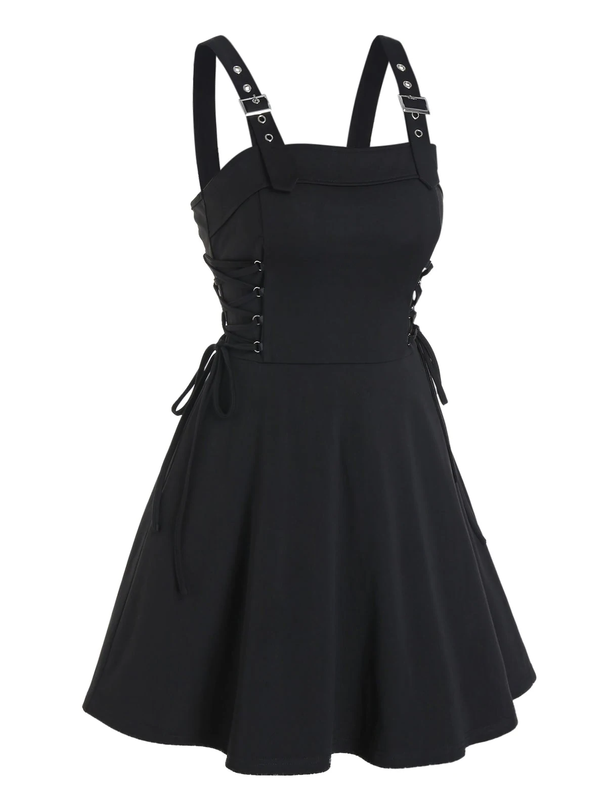 Sleeveless Buckle Strap Lace-up Gothic Dress