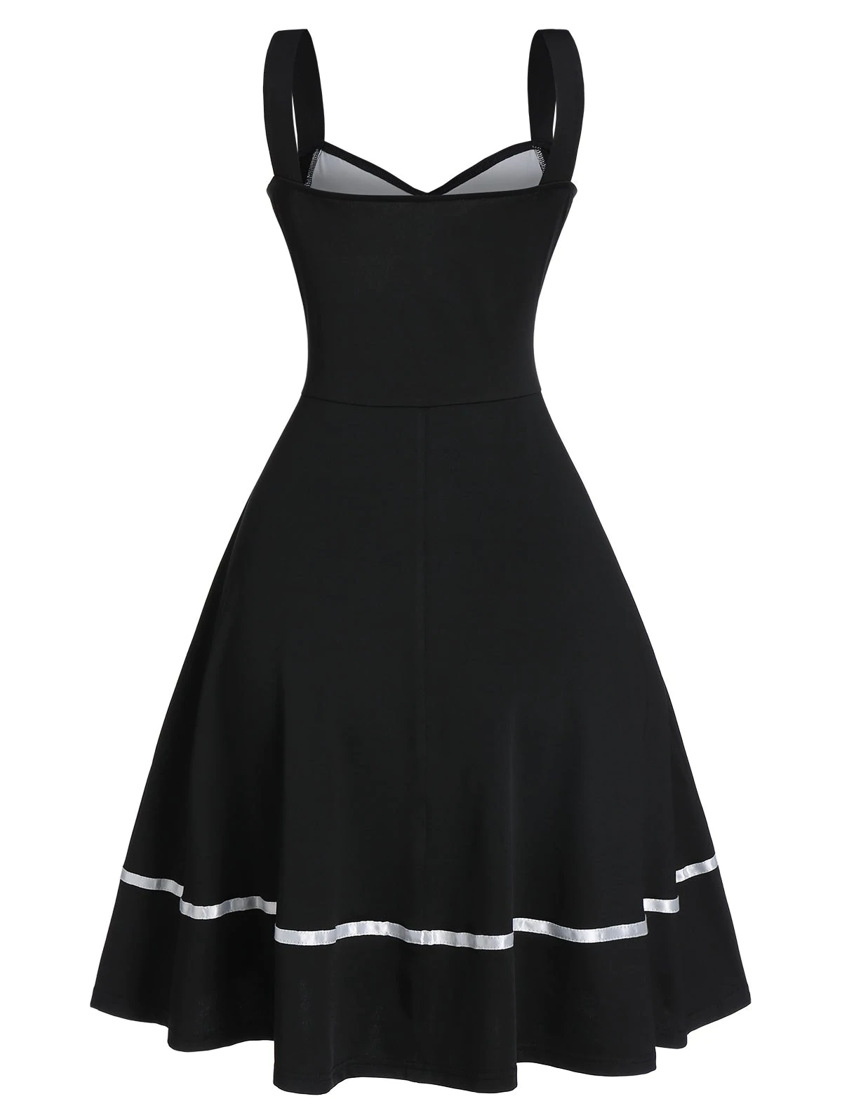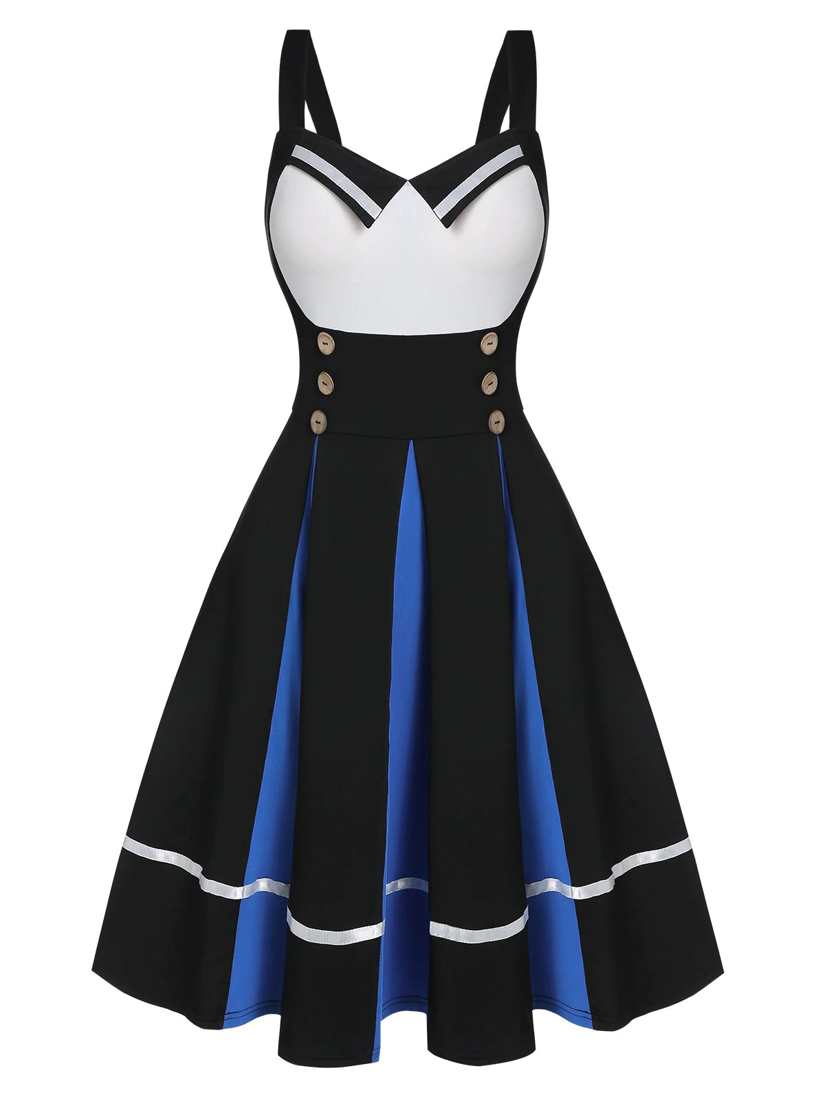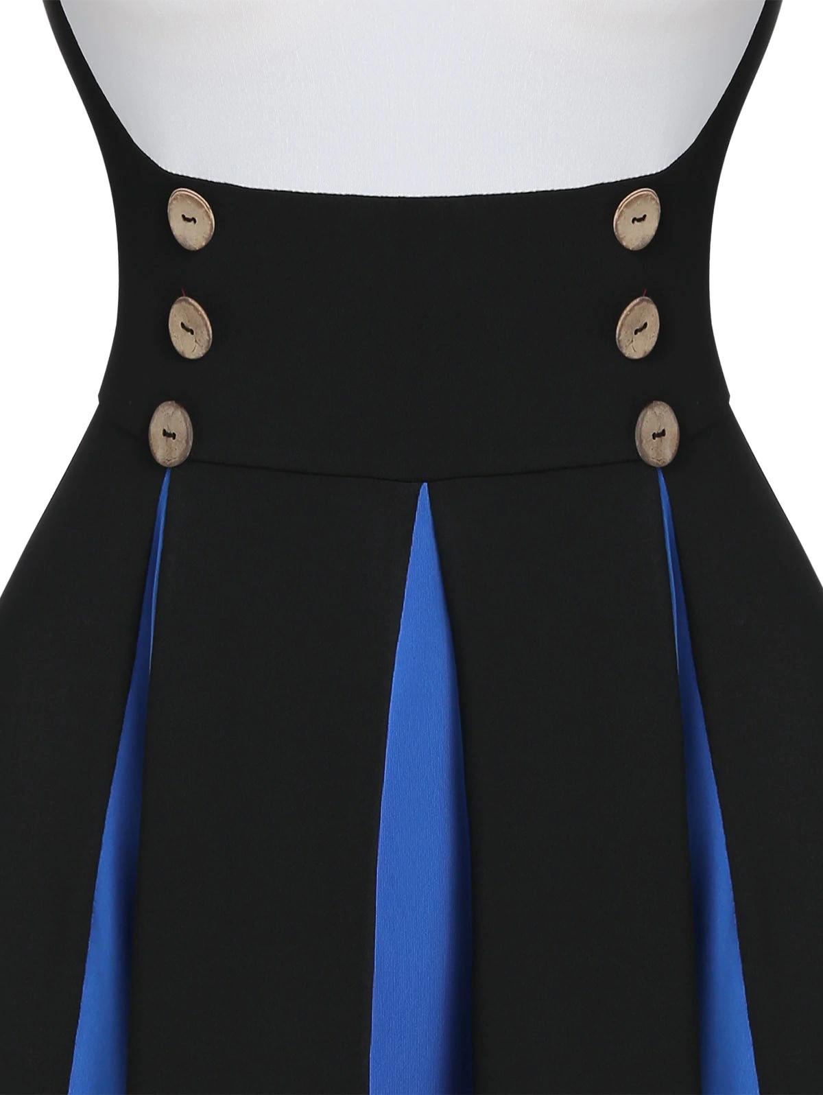 Sleeveless Mock Button Contrast Pleated Vintage Dress