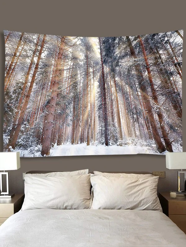 Snowy Forest Printed Waterproof Wall Tapestry