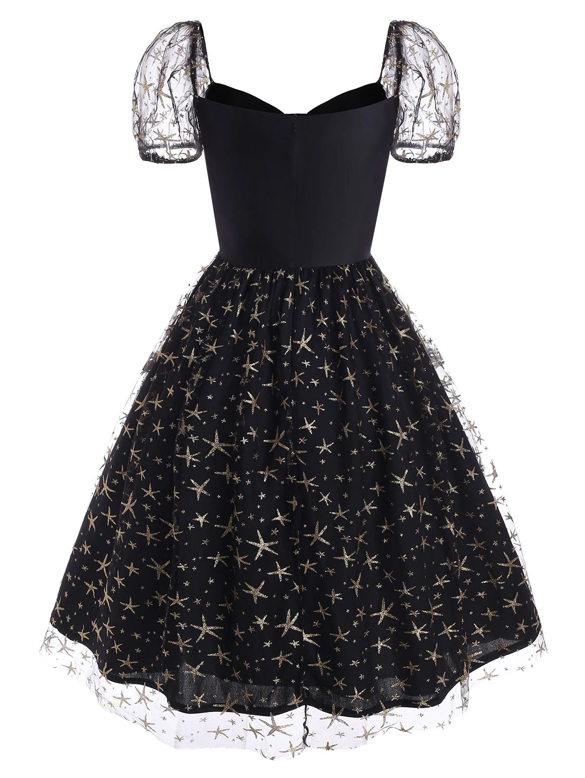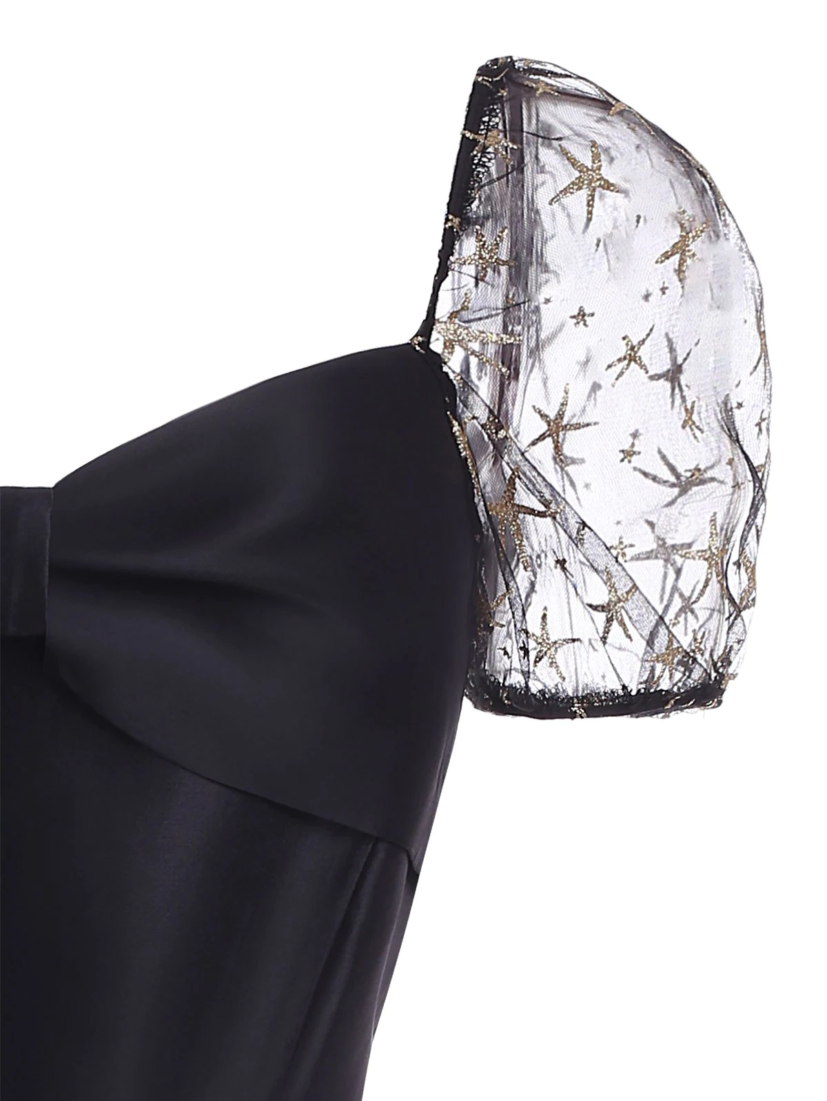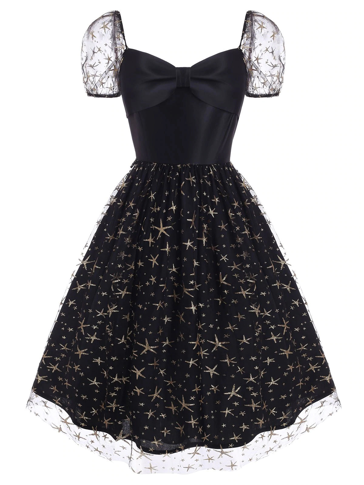 Sparkly Star Lace Insert Bowknot Sweetheart Dress