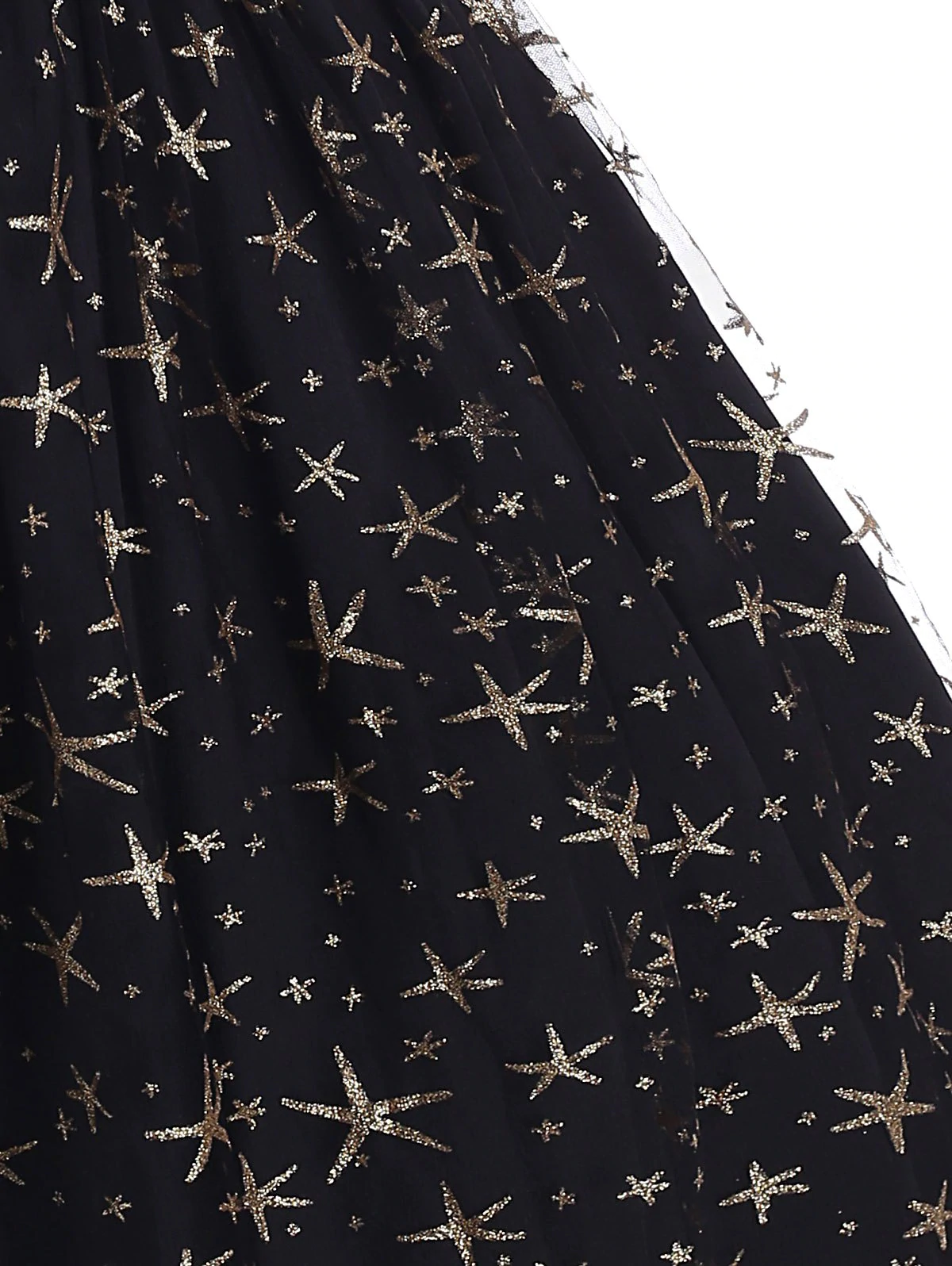 Sparkly stars scatter through the lace overlay and lace sleeves to make you outstanding in the crowd. The large bowknot is placed around the neckline to highlight your beautiful collarbones and draw the eye upward to your face.