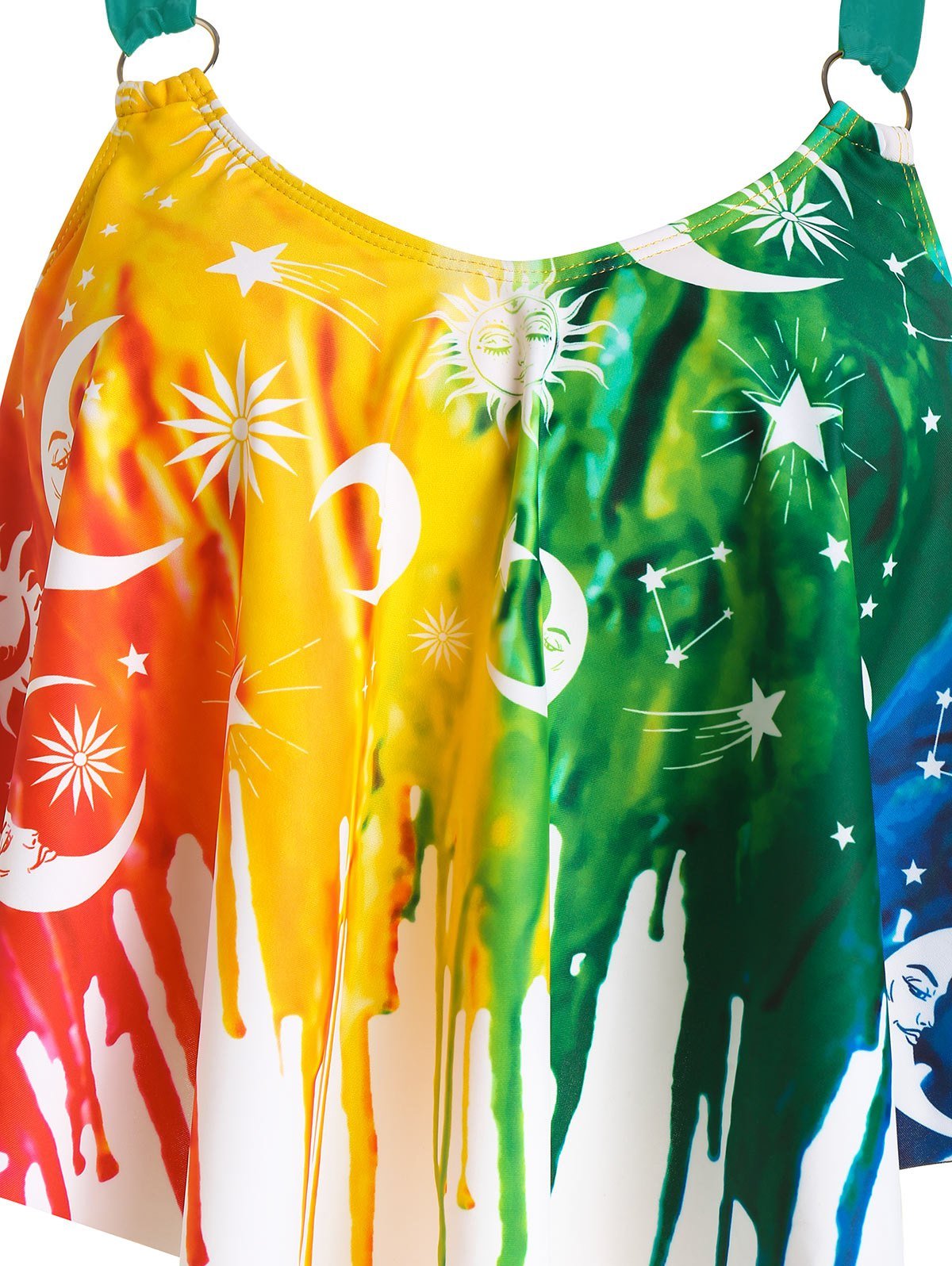 Splatter Moon And Sun Print Ruched Asymmetrical Tankini Swimwear