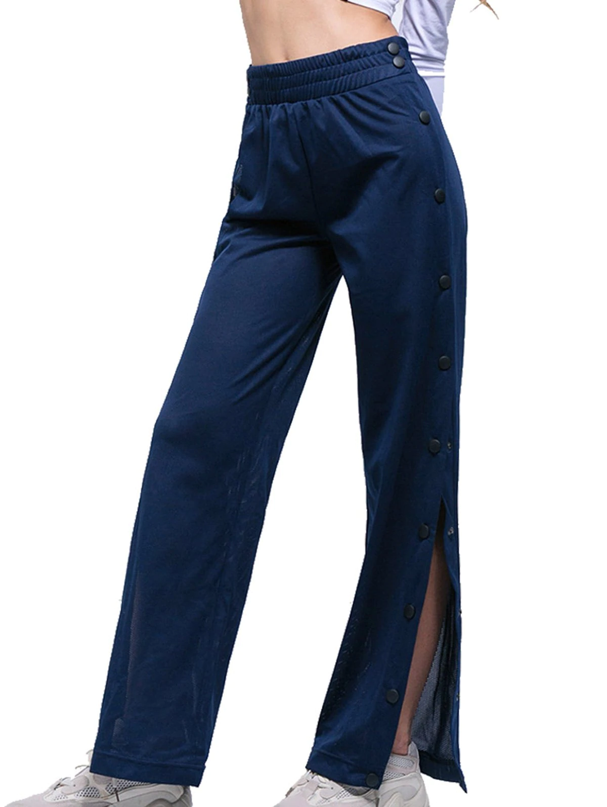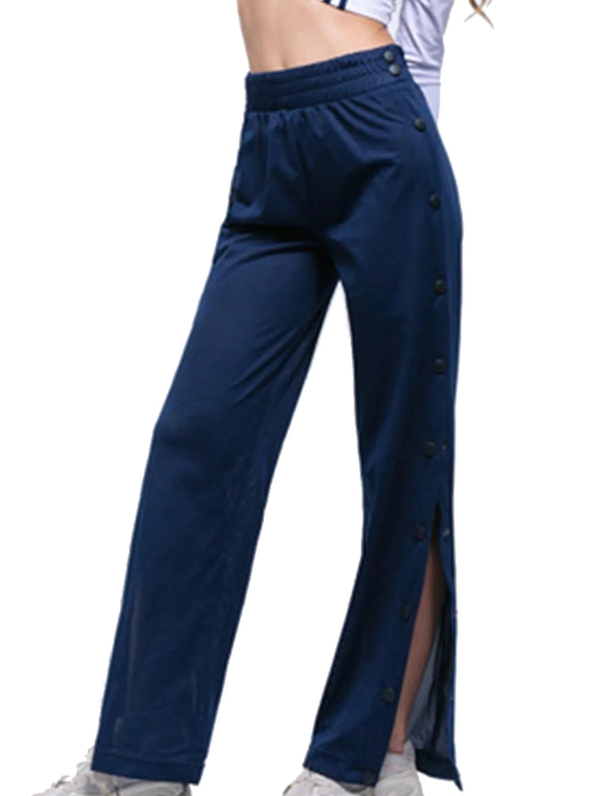 Split Side Button Wide Leg Slacks