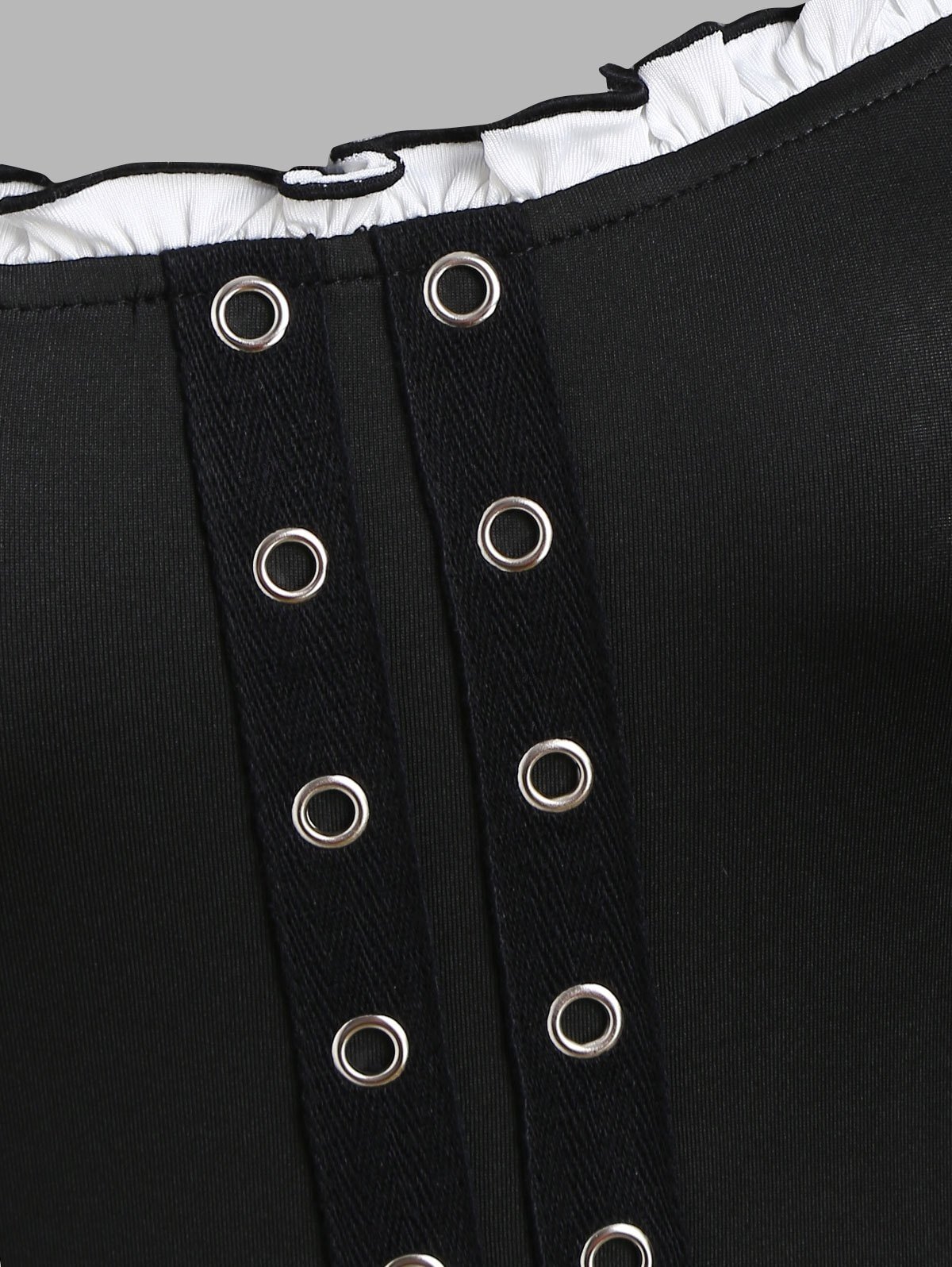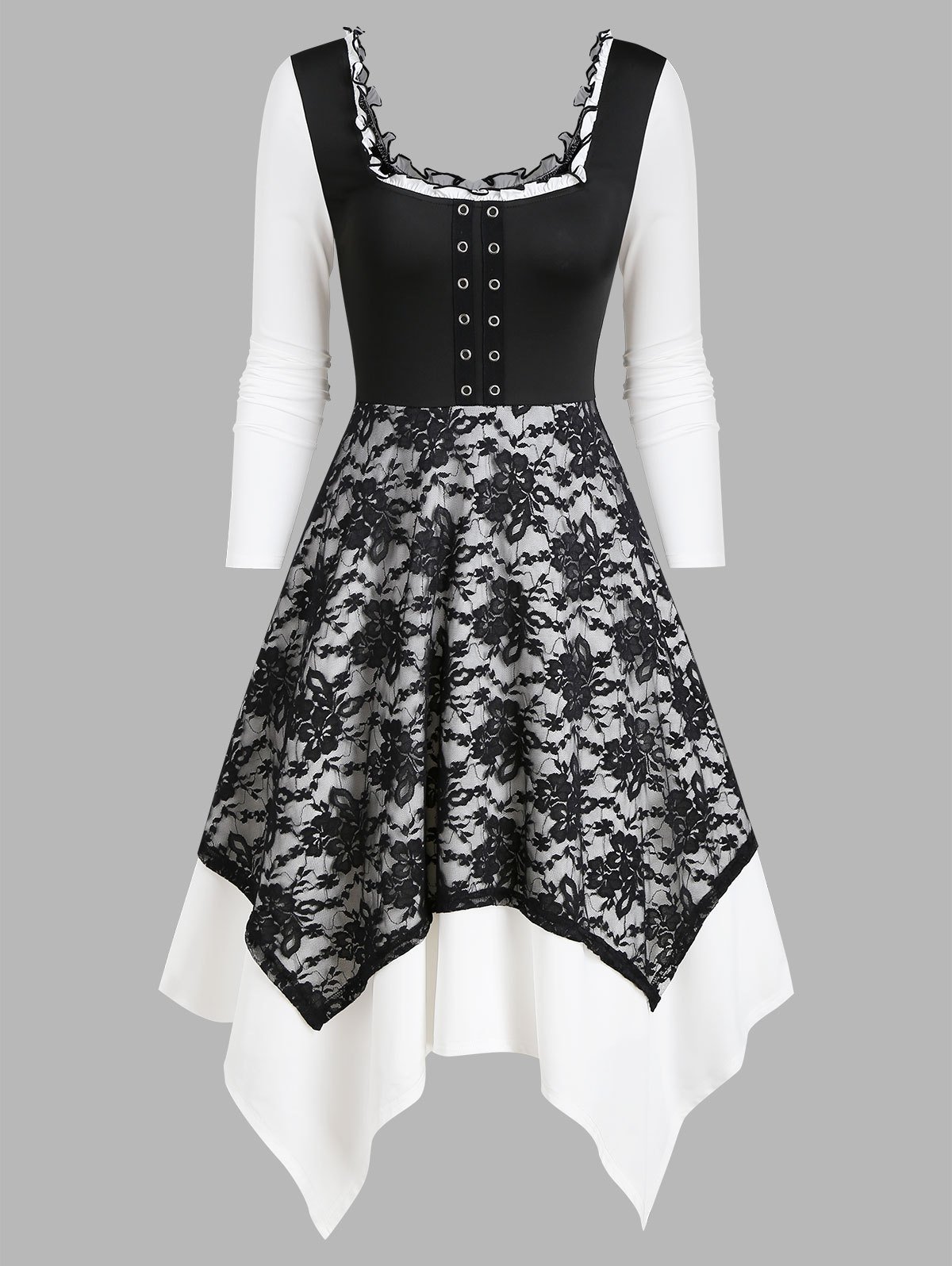 Square Collar Grommet Layered Asymmetrical Lace Dress