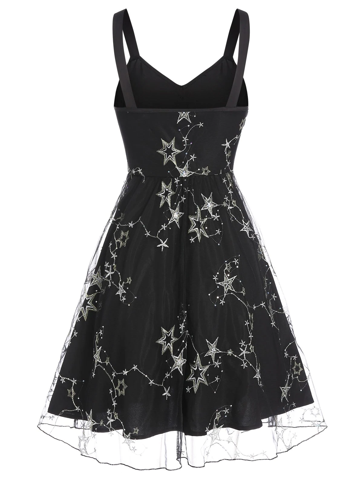 Star Pattern Overlay Lace Mini Cami Dress