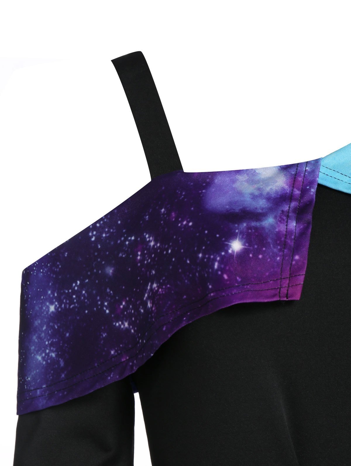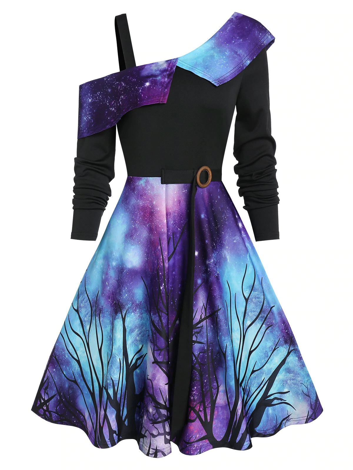 Starry Sky Halloween Skew Neck Asymmetrical Dress