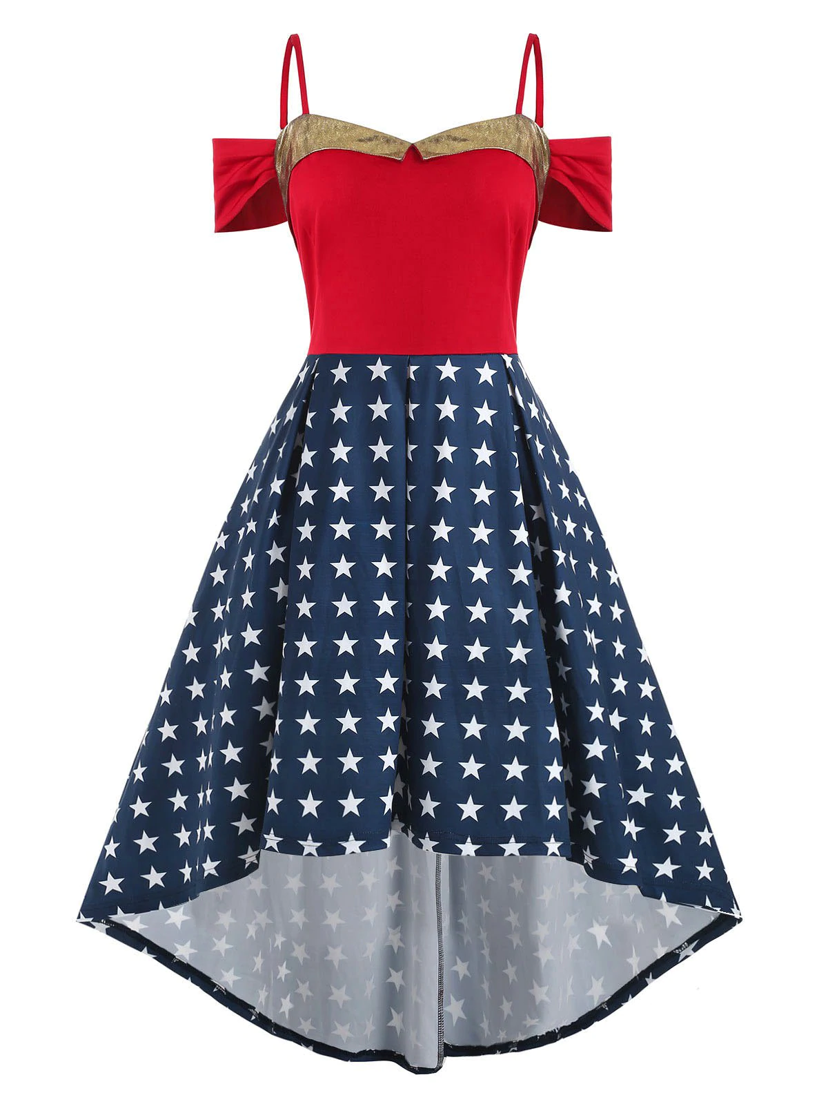 Stars Open Shoulder High Low Cami Plus Size Dress
