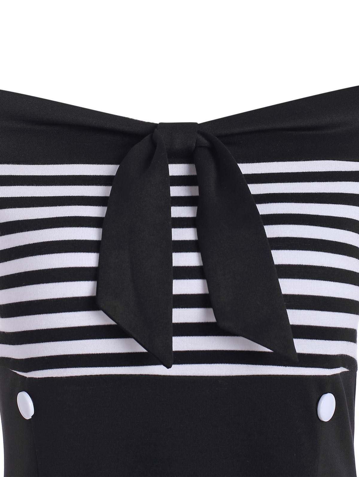 3 reviews for Striped Bowknot Off Shoulder Mock Button Dress